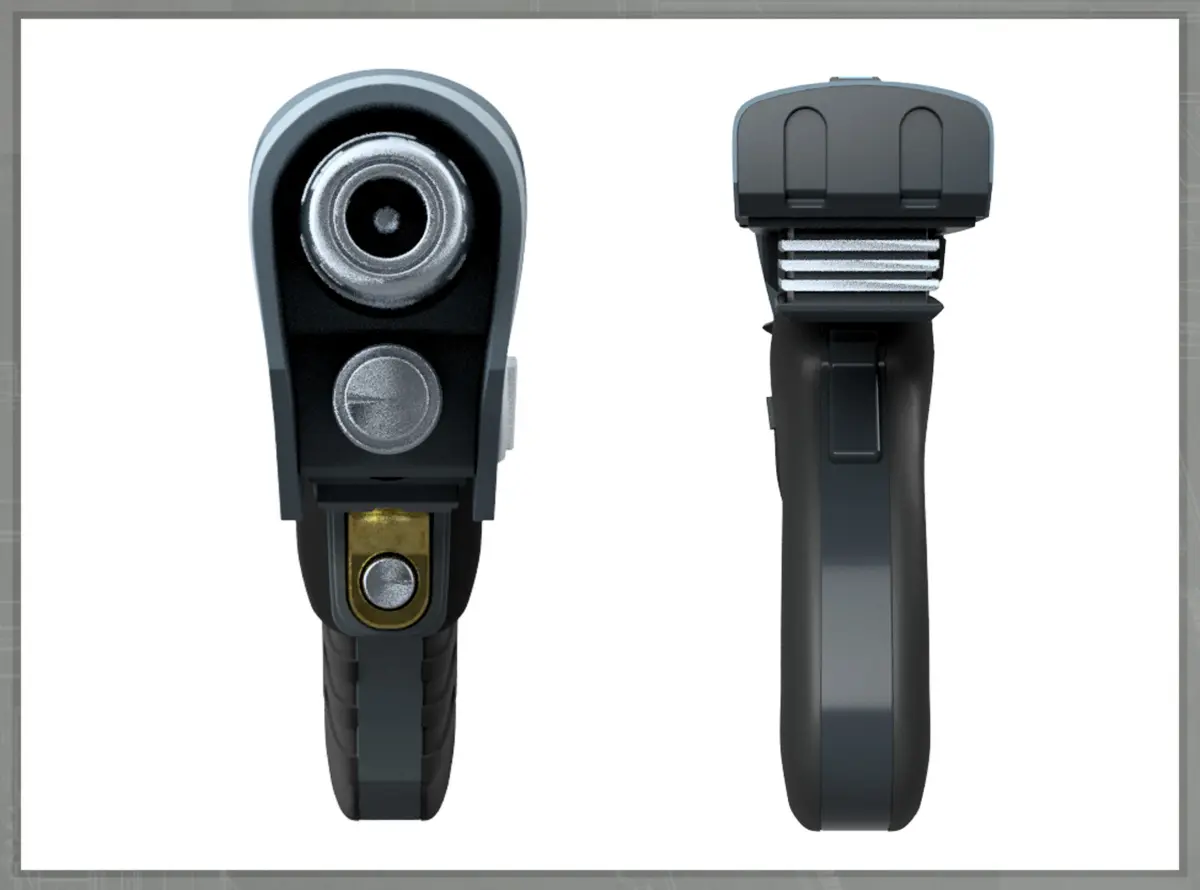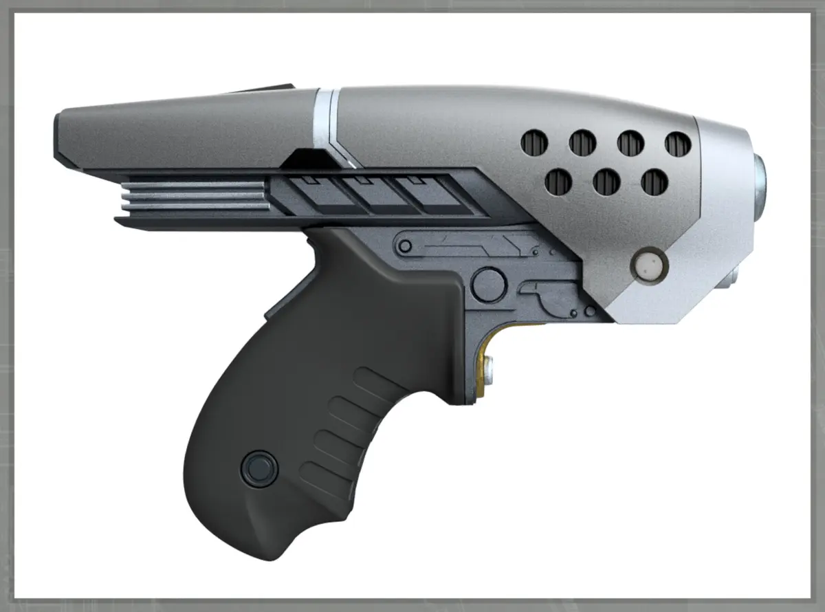 This is a semi-static rendition of the Ray Lai concept design for a re-imagined version of the Enterprise 'Phaser' device.It does have a hinged front and removable power cell if used in combo with magnets and metal hinge rods. Magnet details are in the images!