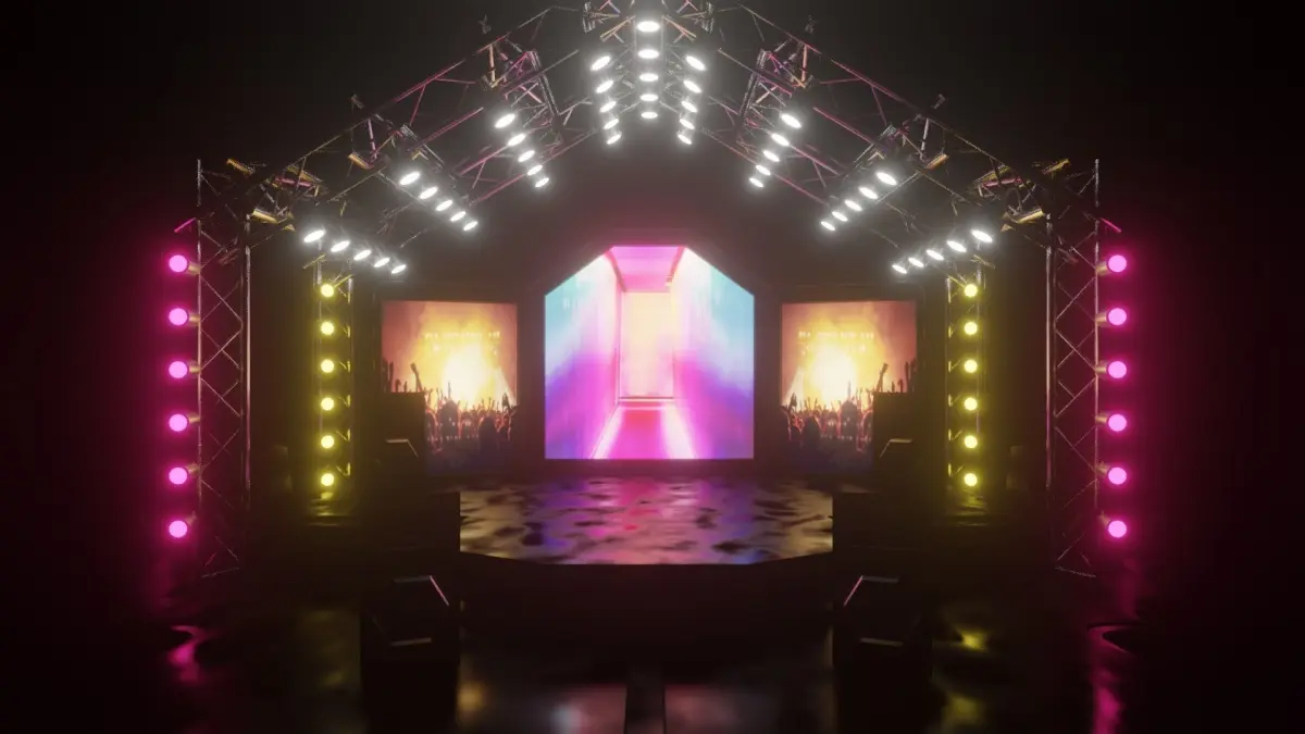 Entertainment Concert Event Stage 3D Model with LightFull 3d modeling process done with Blender and materials assigned with a blender. Why did you buy this model? Here are some features:
