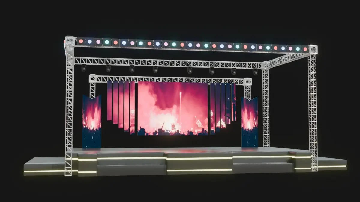*Entertainment Concert Event Stage 3D Model with Light. Full 3d modeling process done with Blender and materials assigned with a blender. *Why did you buy this model? Here are some features: