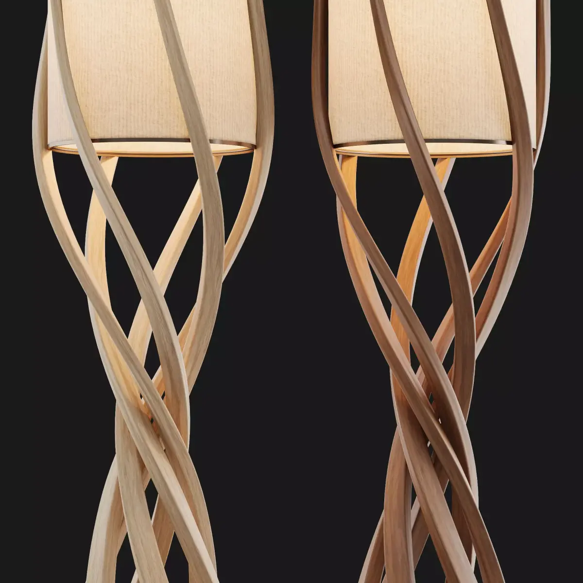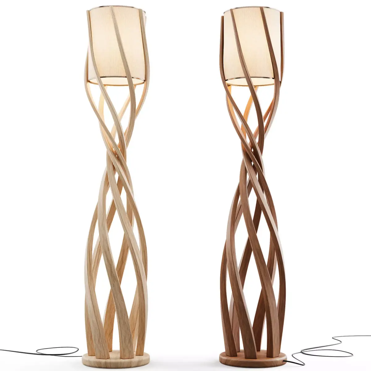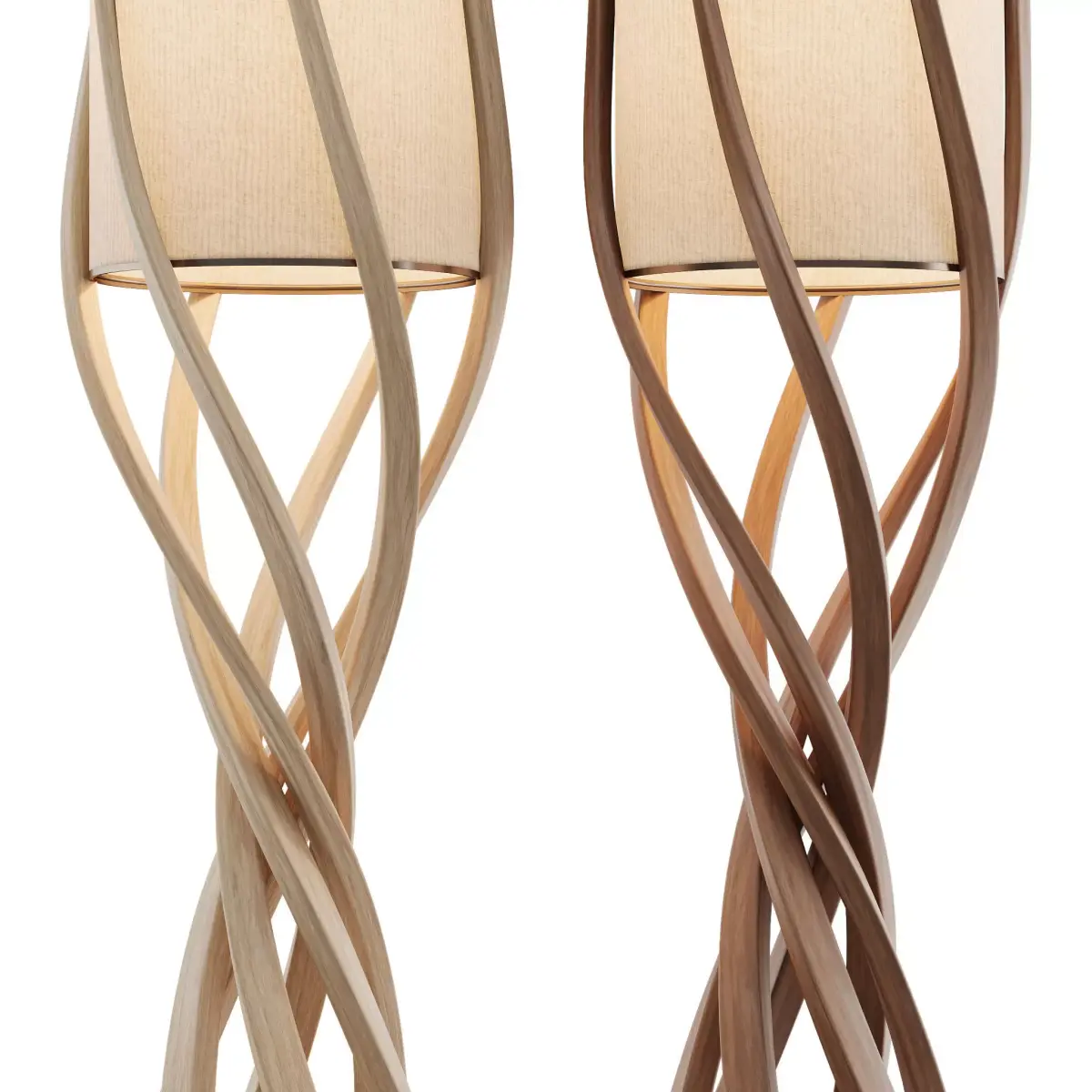 Elegant sculpted floor lamp with braided wooden slats and a soft fabric shade.The Entouine Floor Lamp brings an organic handcrafted aesthetic inspired by Scandinavian and Wabi Sabi design.Includes two wood material variations: Light Oak and Walnut.