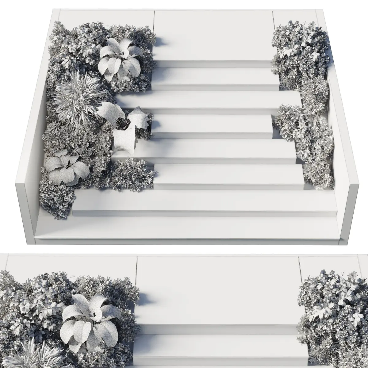 Entrance and exit stairs with furniture and garden 158