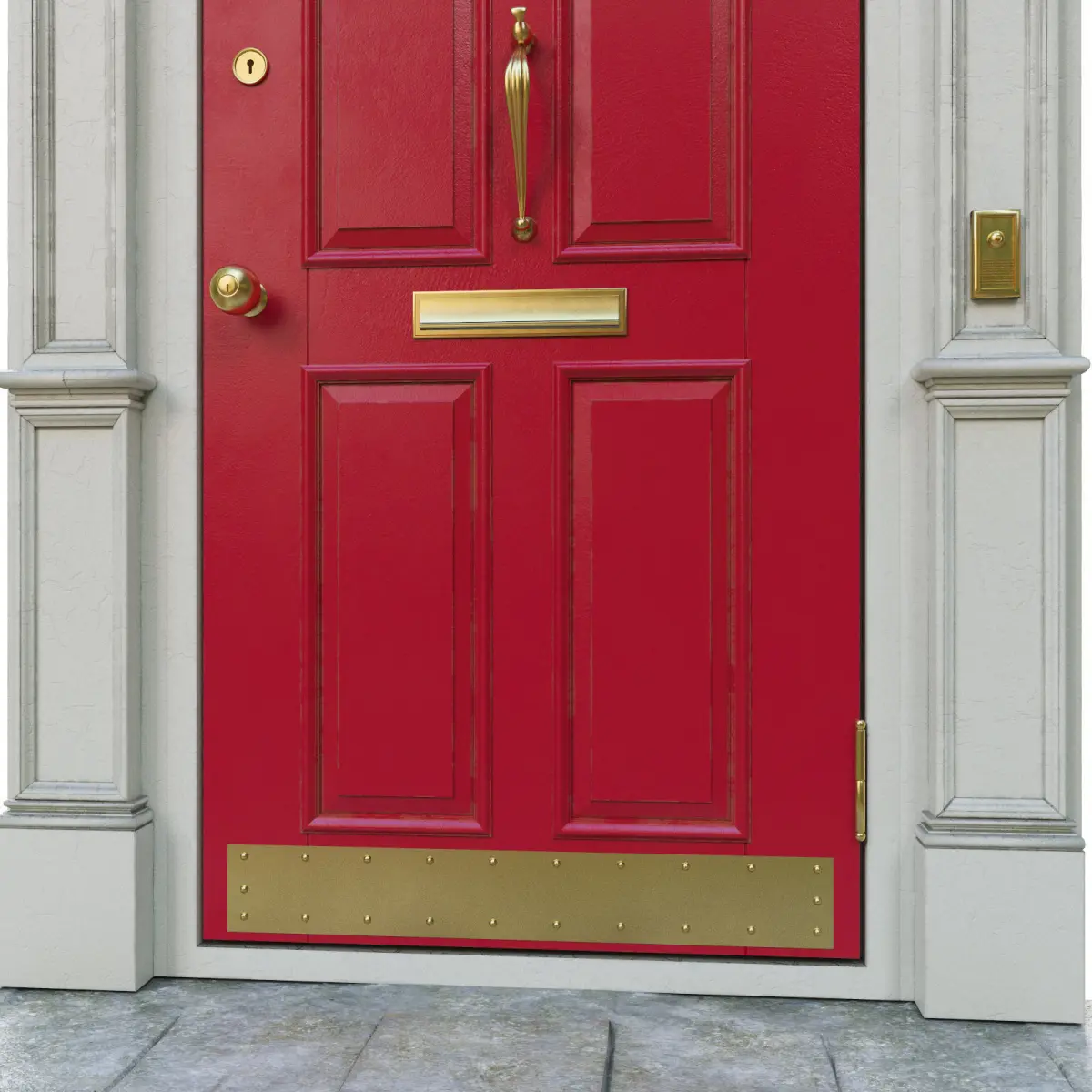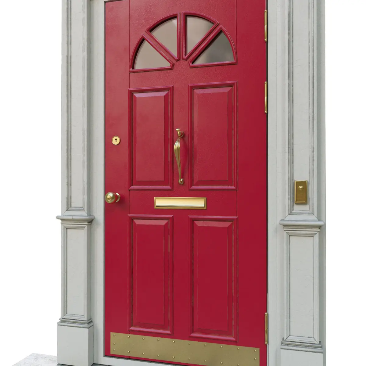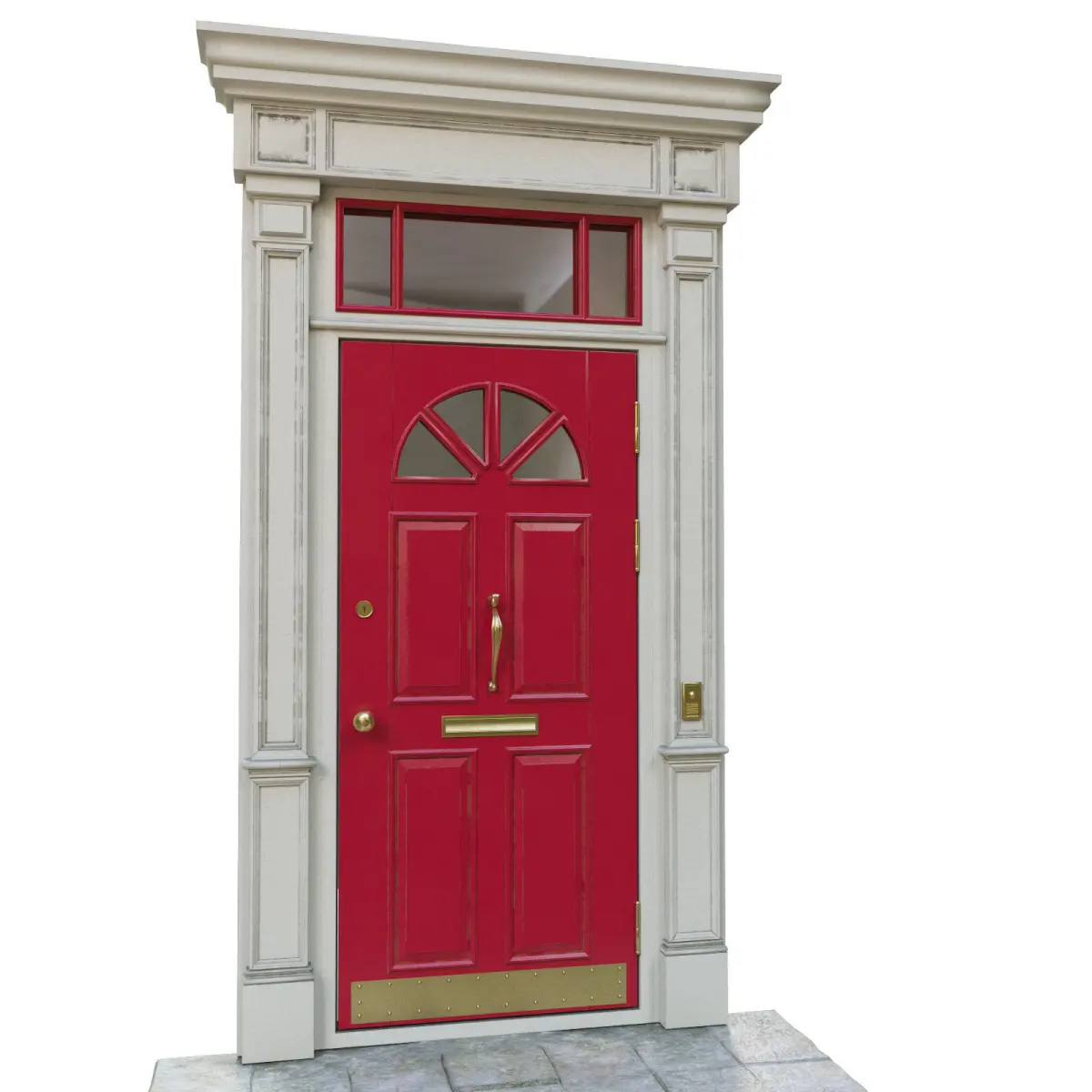 The entrance door to the house. The width of the door is 900 mm. In the scene there is a door and 11 spheres with different colors for the door.