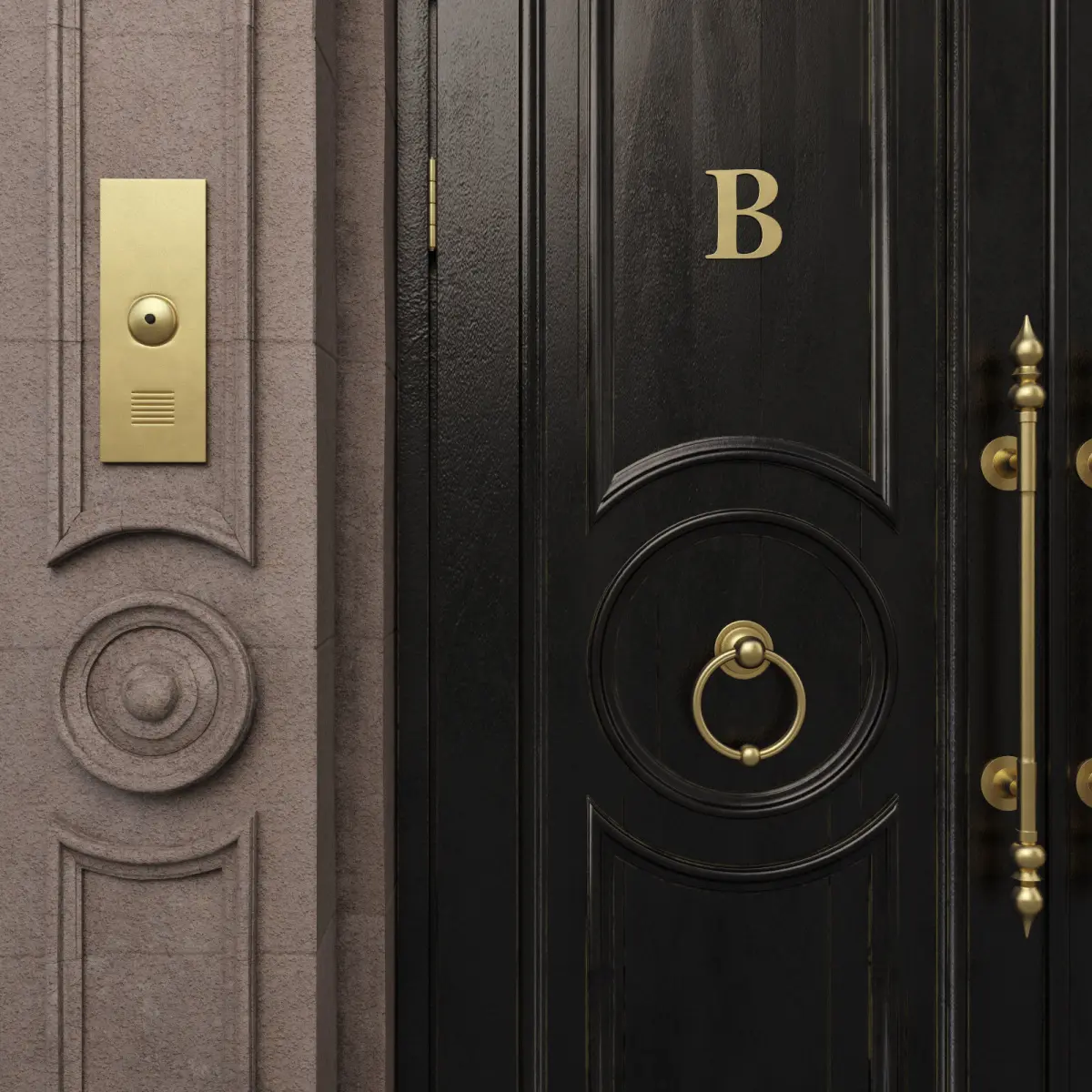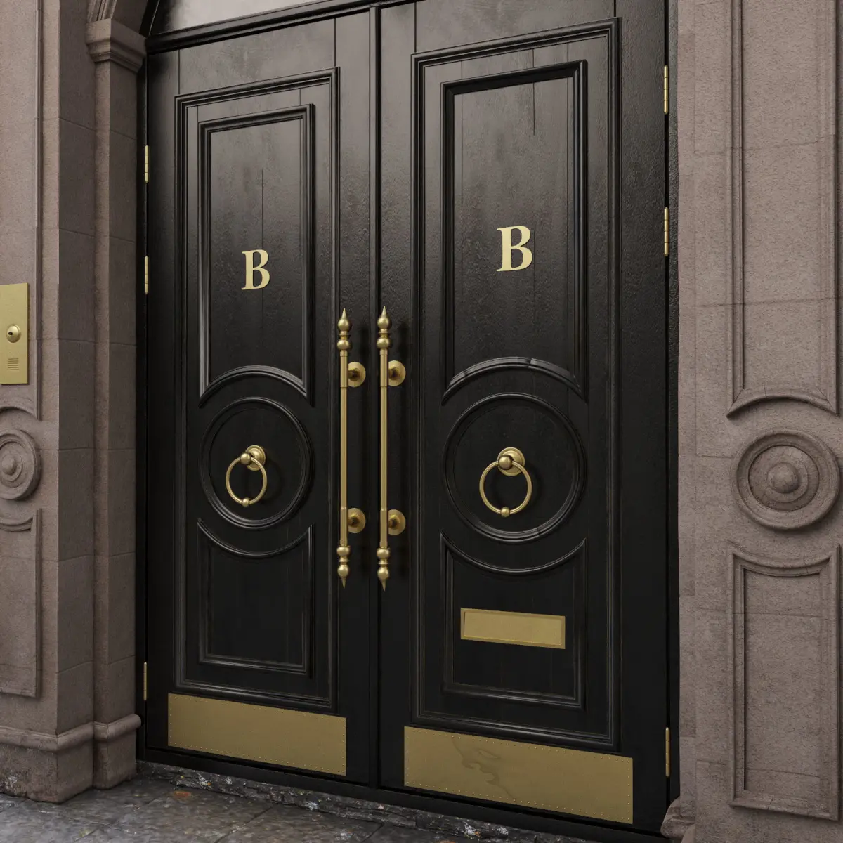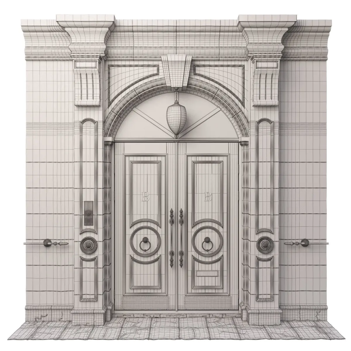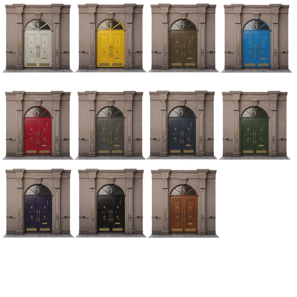 The door is a classic swinging L-1600 H-2900. In the scene 11 spheres with different materials for the door Click the eyedropper on any sphere and select the material.