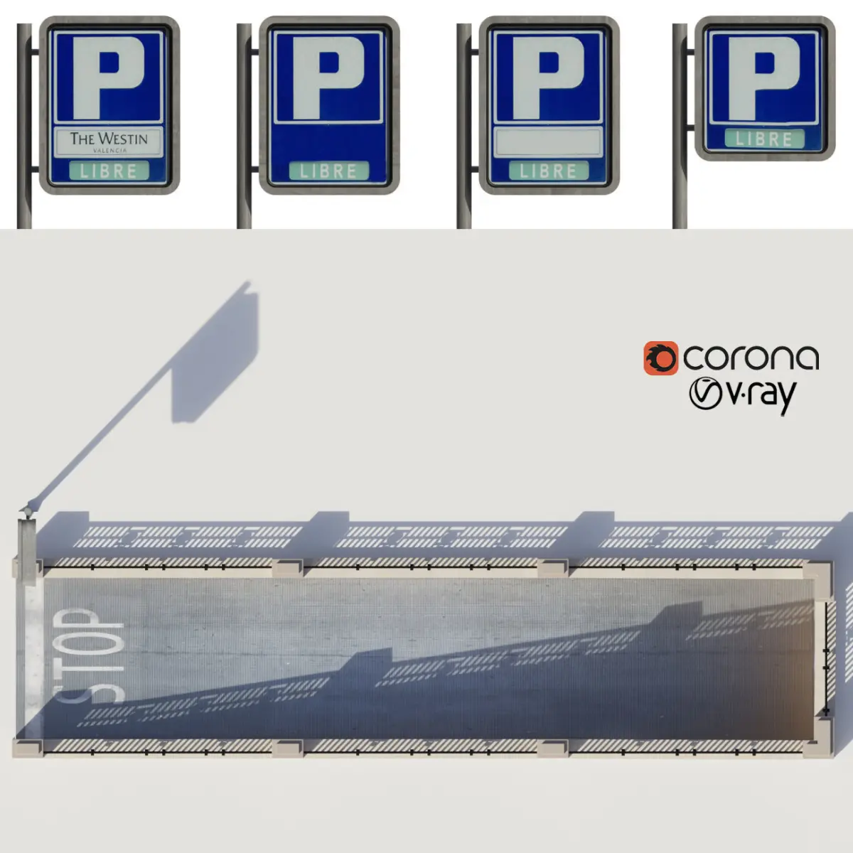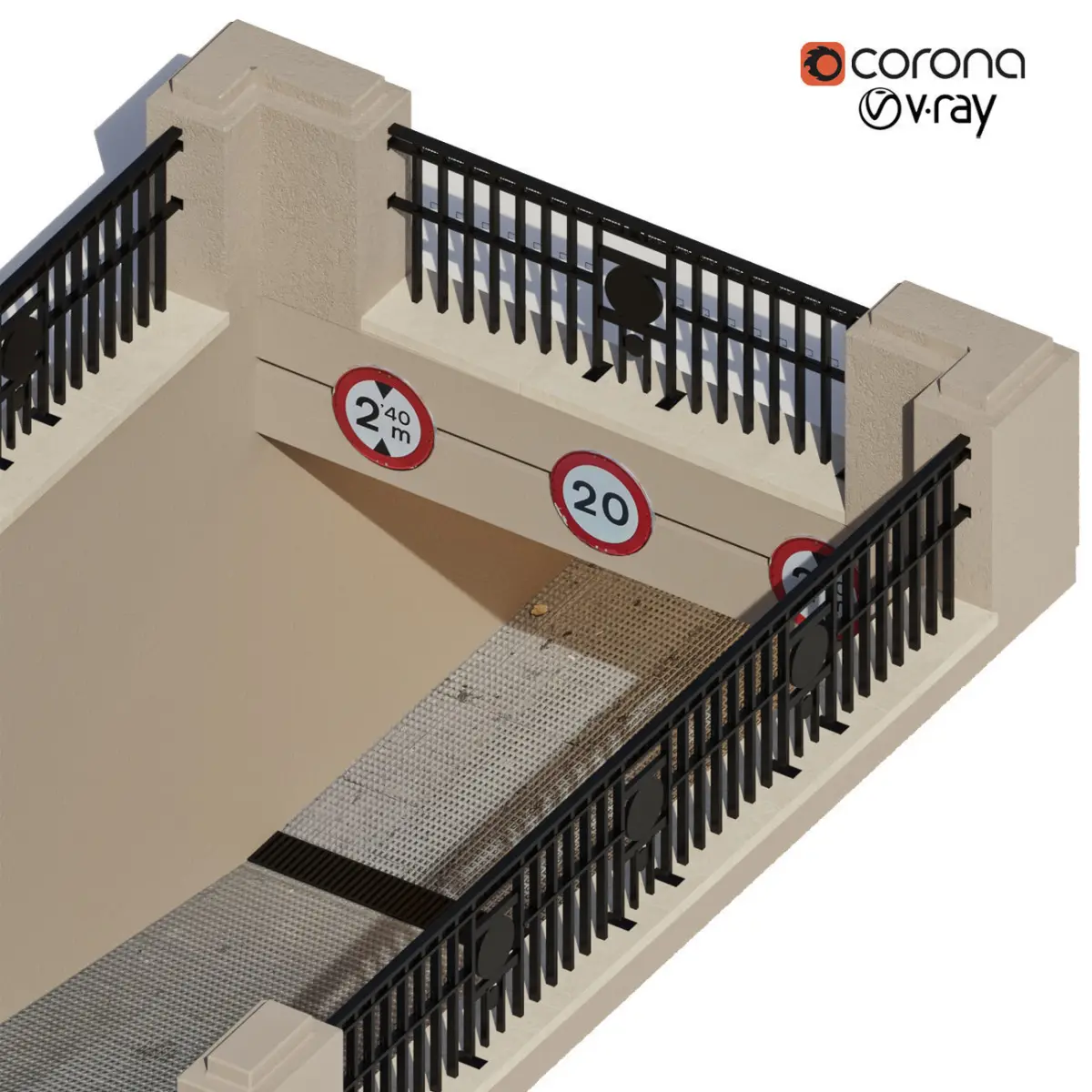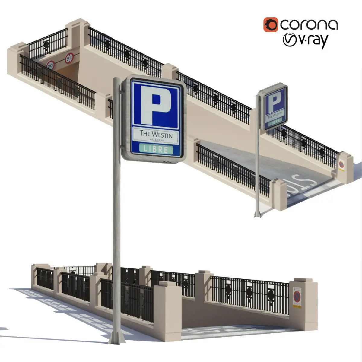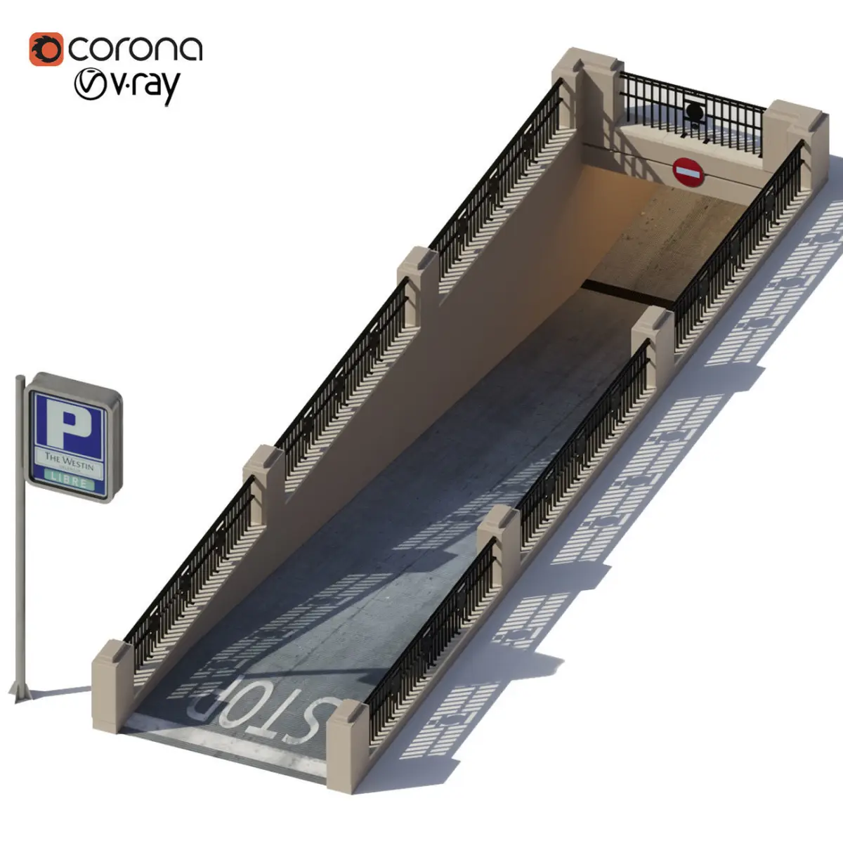 Entrance to the underground parking.There is entry and exit.There is also a parking stella for your logo, or a clean sign P