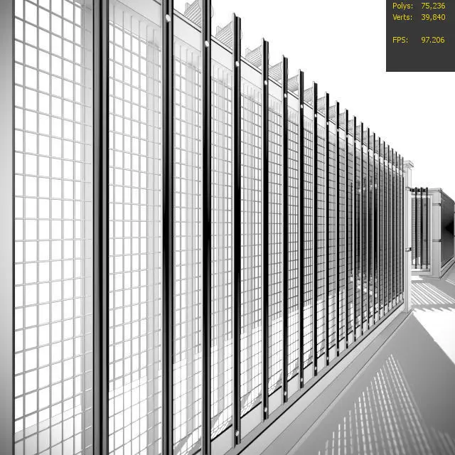 Wrought iron gate and fence material configured.Modern Architecture Fancing GatePolys: 75236 Vertx: 39840 FPS: 96206Formats: 3DS Max 2013, FBX, OBJ, Corona Render,V-rayThe file gate is not satched in one mesh,it will be possible to use them somehow.