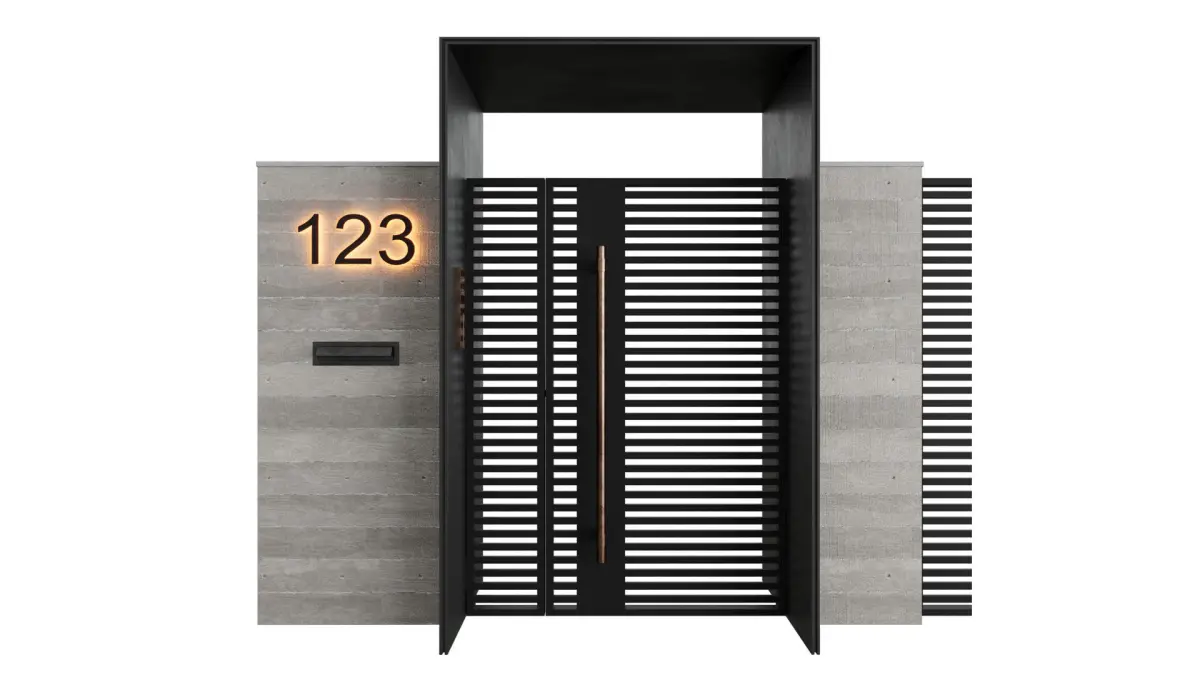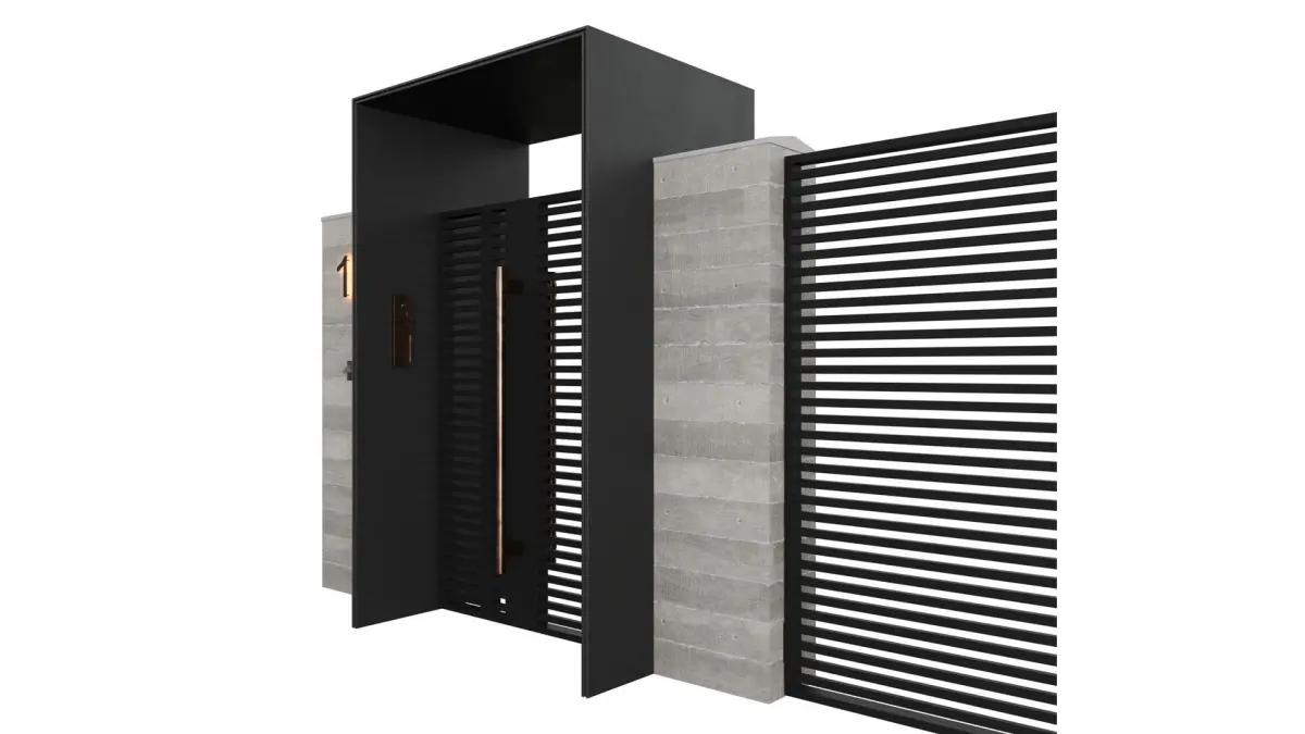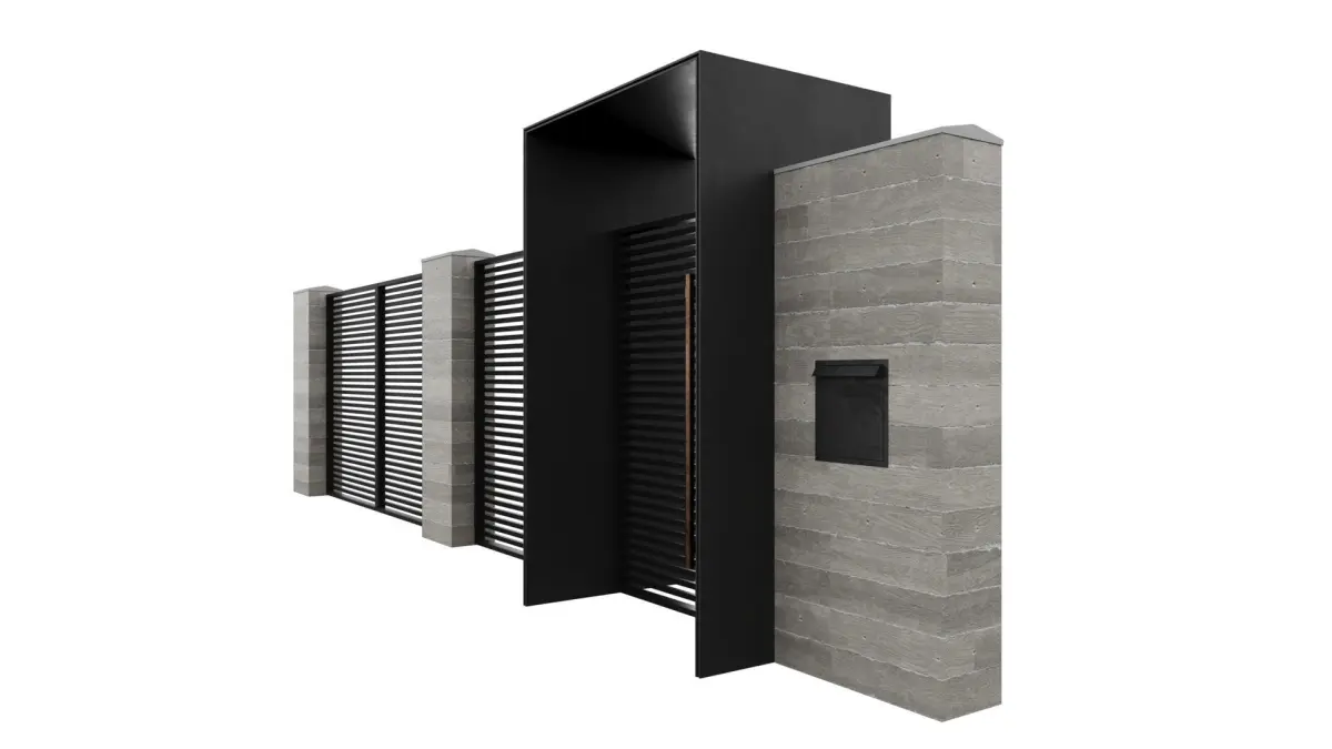 Entrance group 1. Concrete + metal, Gate, swing gates, with intercom and mailbox