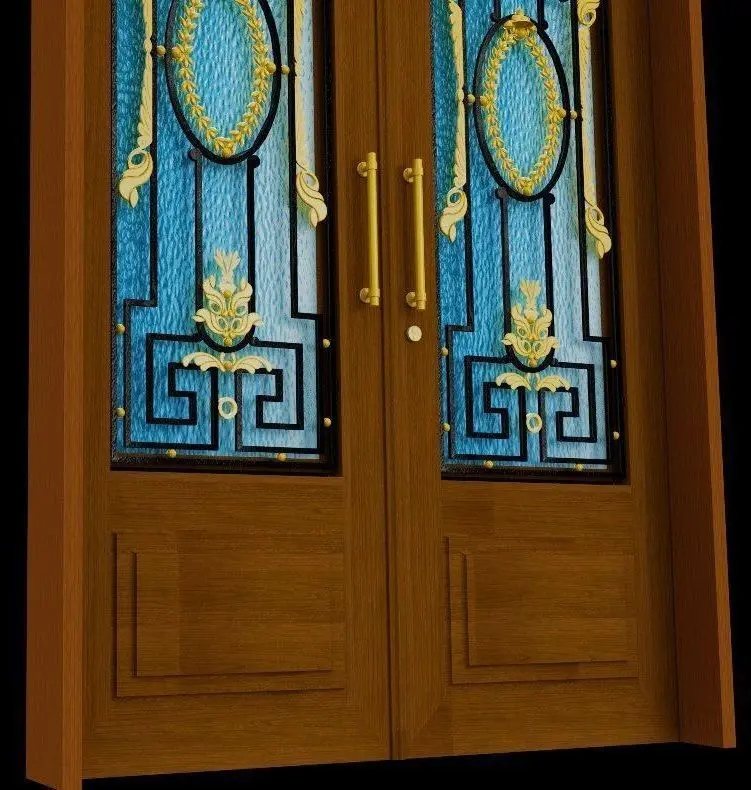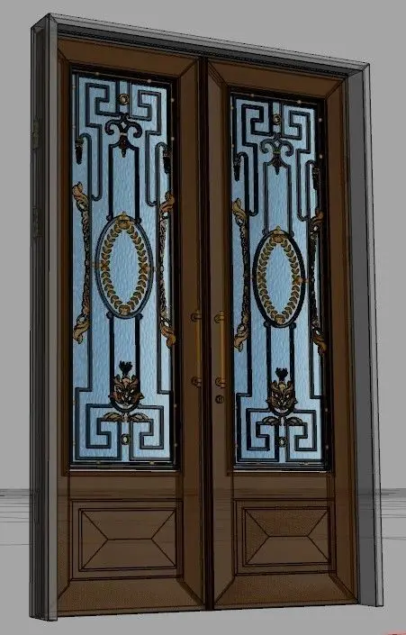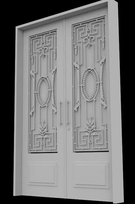 Entry door - Wood - Wrought iron 3D model