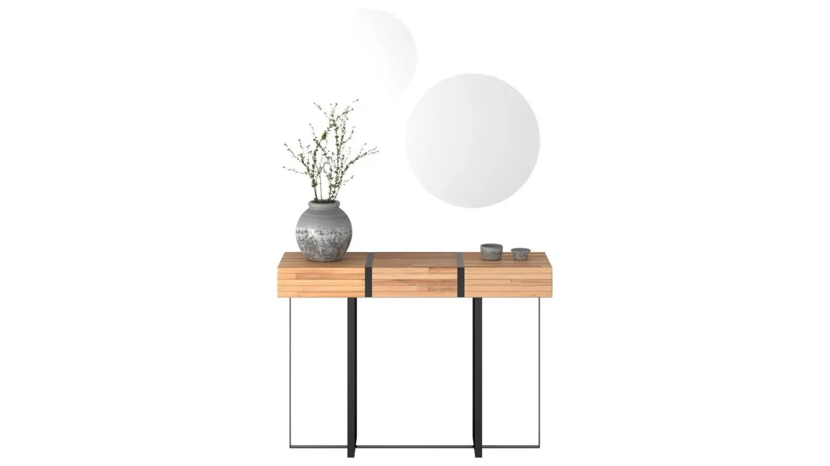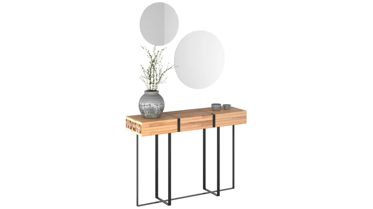 Embrace the organic beauty of our Textured Layered Wooden Bench, crafted with rustic vases and accessories that add character to any space. Enhance the ambiance further with a hardy river plant and stylish circular mirrors, creating a warm and inviting atmosphere that brings the essence of nature into your home.