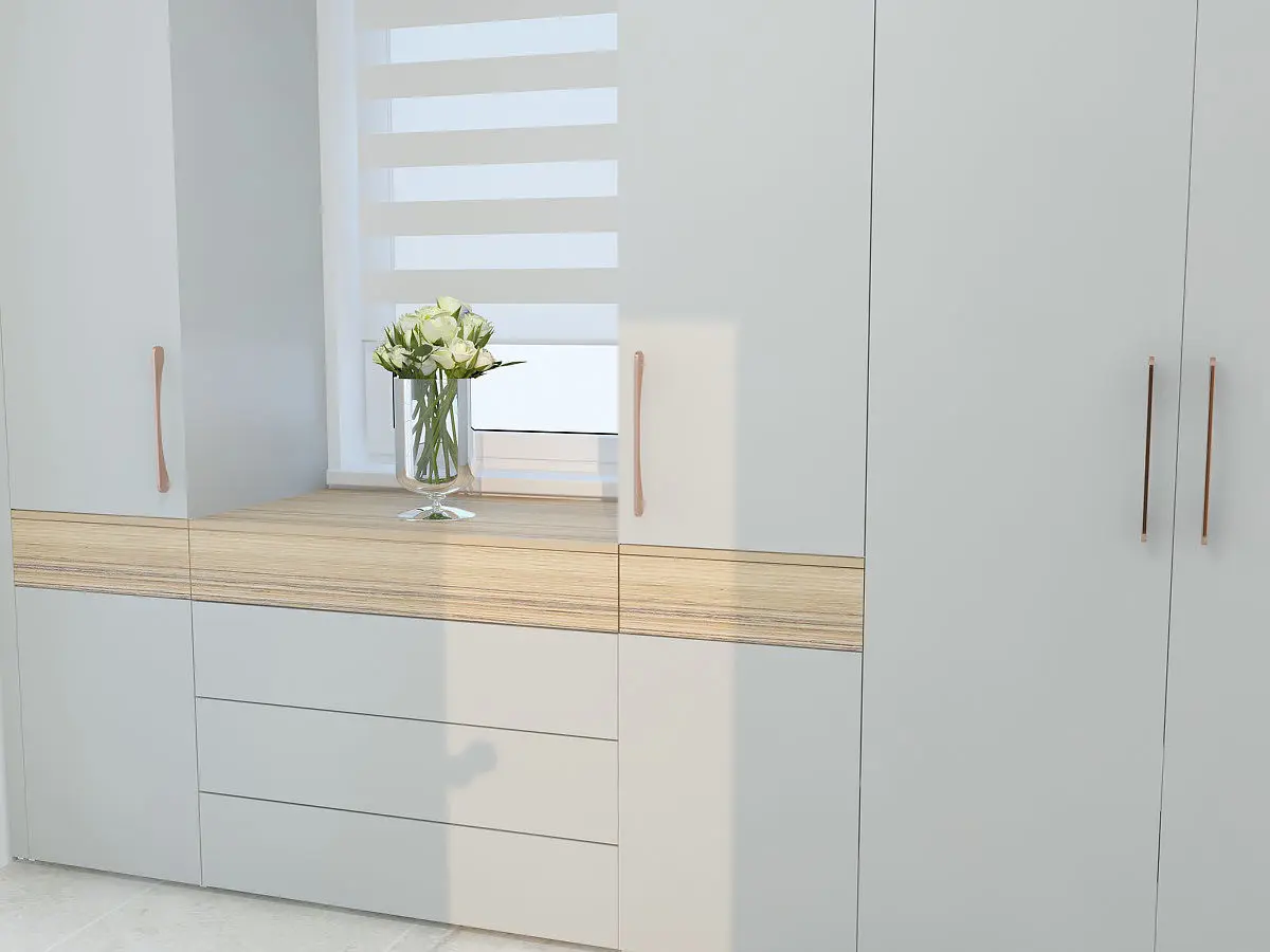 Modern wardrobe for entryway. Exactly like in render with textures, materials and LIGHTS, VRAY CAM.