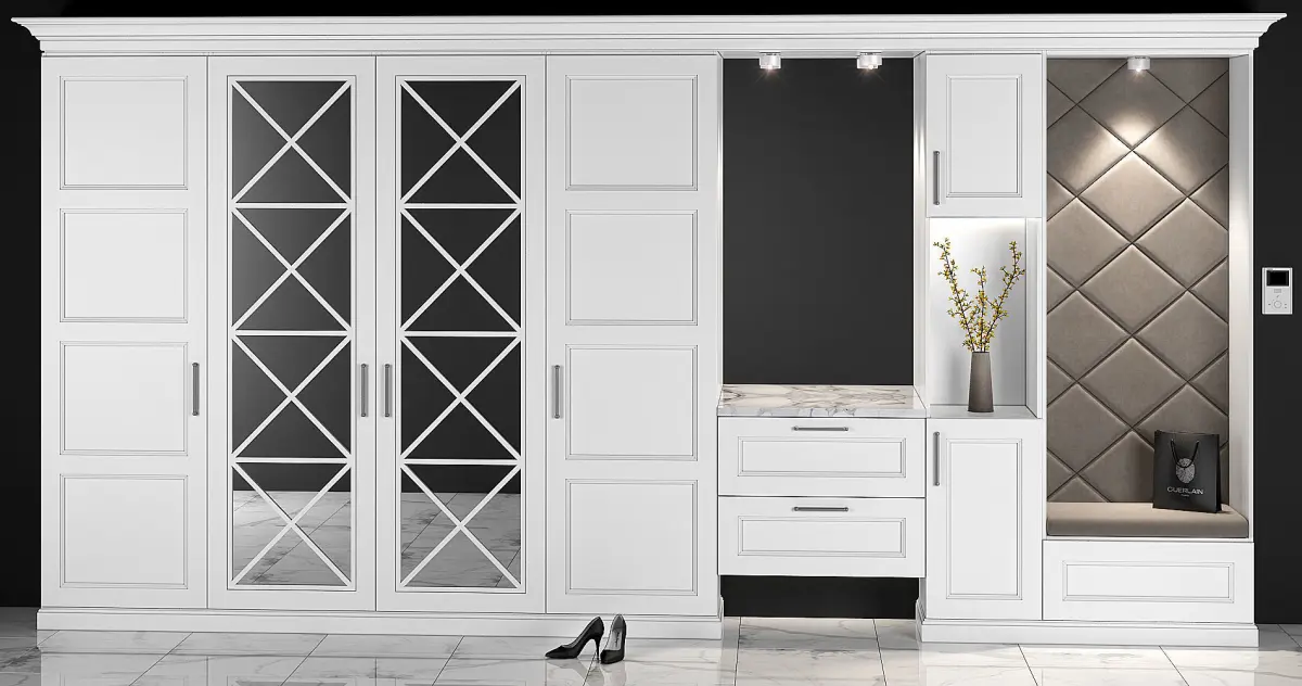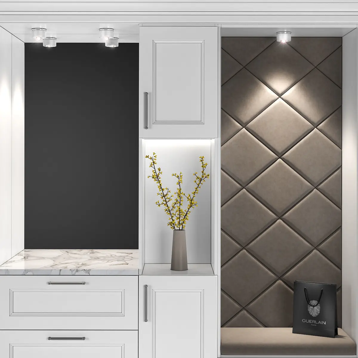 Furniture composition for the hallway or bedroom. Furniture composition consists of separate grouped modules for easy editing. Units: Millimeters Dimension: 5300(W) x2700 (H) x 450 (D) mm Render: V-Ray 2,20 Formats: 3ds Max 2010, FBX