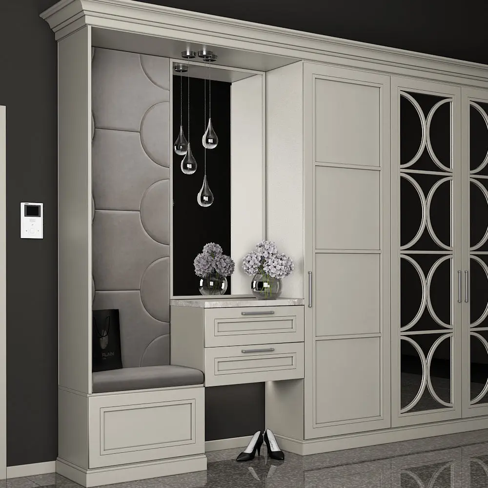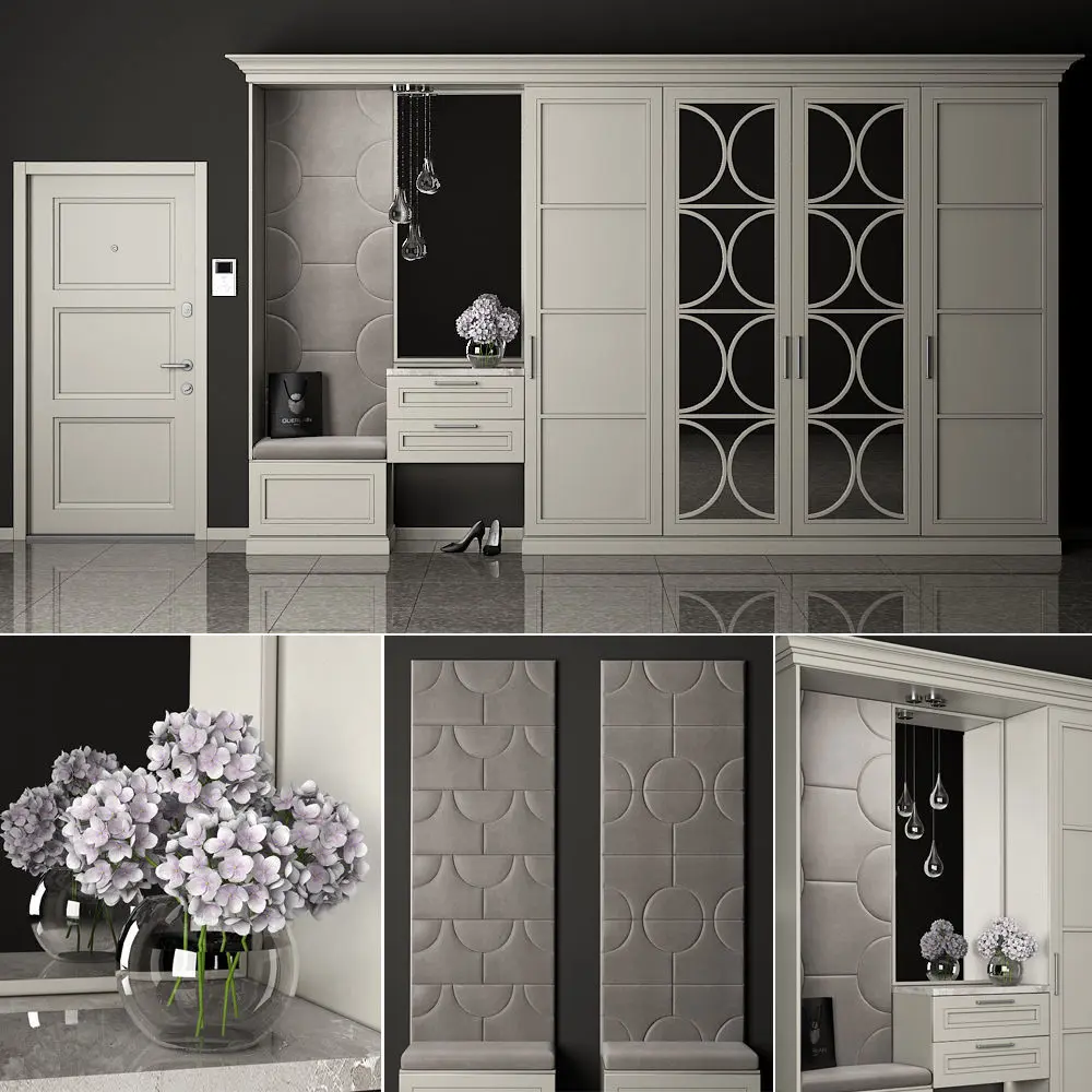 Furniture composition for the hallway or bedroom. Furniture composition consists of separate grouped modules for easy editing. Units: Millimeters Dimension: 3750(W) x2700 (H) x 450 (D) mm Render: V-Ray 2,20 Formats: 3ds Max 2010, FBX