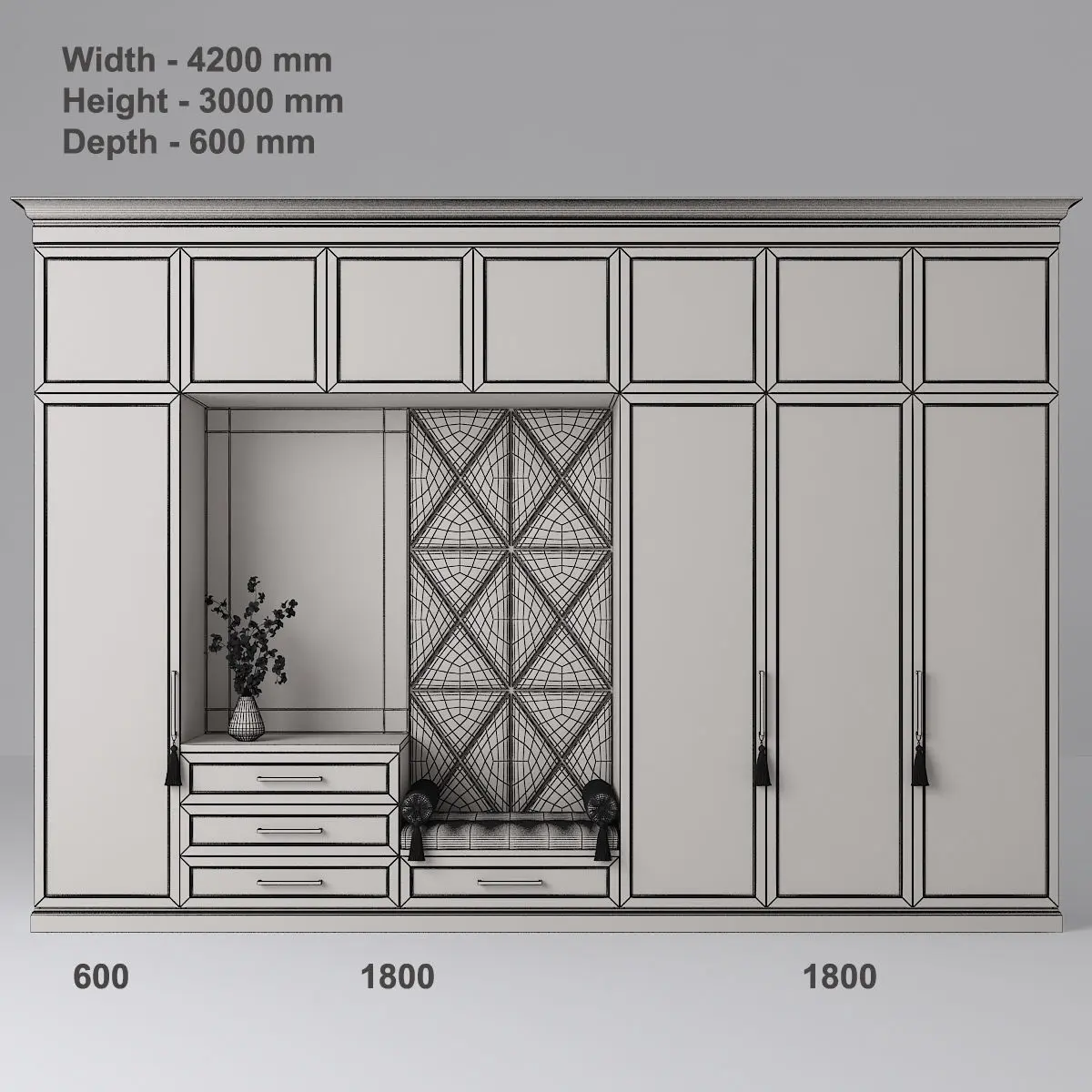 Dimensions : 4200 (W) x 3000 (H) x 600 (D) mm