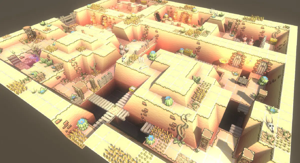 A usefull and versatile full-fledged environment kit with tons of outstanding modular lowpoly assets.Inside this impressive asset package you will find a complete kit of very high quality low poly modular meshes ready and meant to create awesome “top-down” deserts and erg wastelands. All of them ready to create beautiful indoor scenes and environments and fully compatible with our amazing [retro-kit packages].