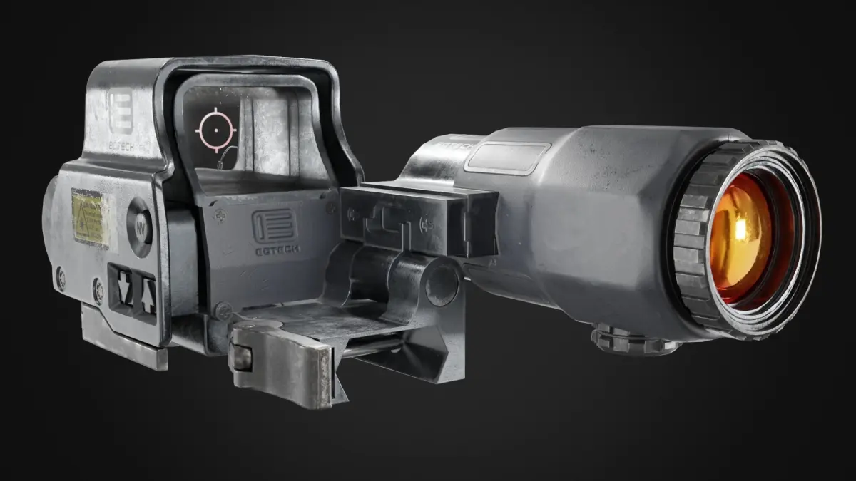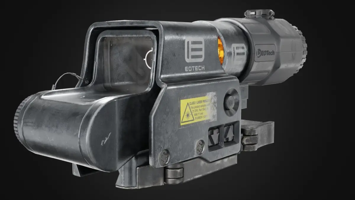 4K PBR textures EOTech EXPS3 HWS with G45.STS Magnifier (base color / heigh / metallic / normal / roughness / emissive/ opacity).