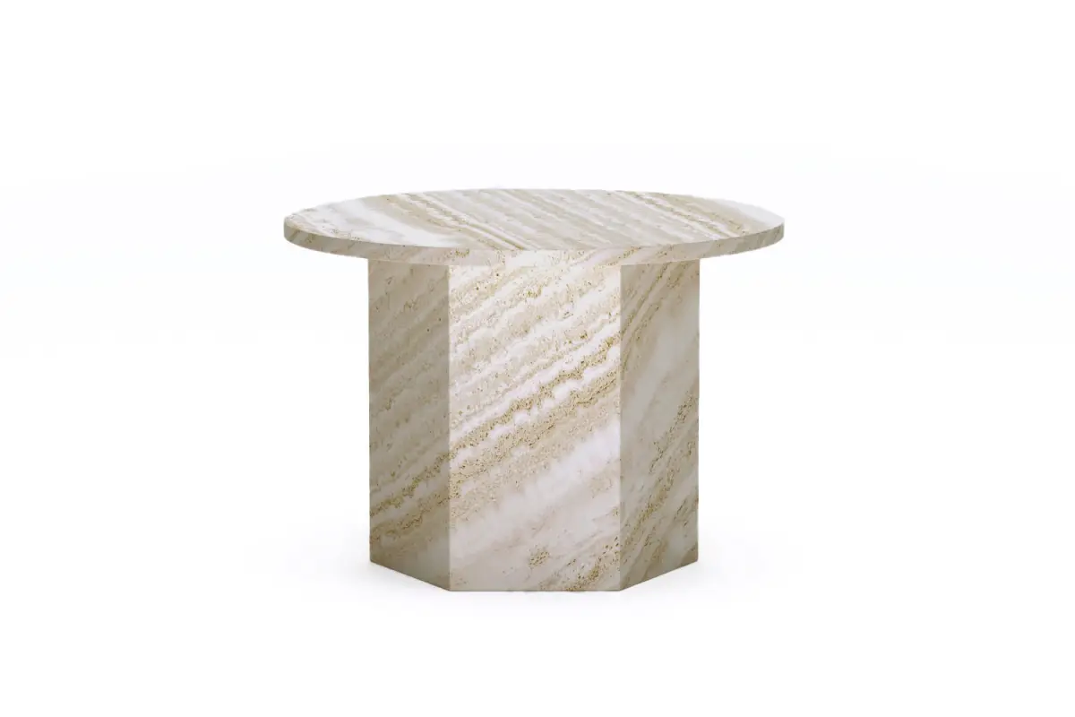 Tee set includes 3 tables inspired by Epic series by GUBI. All the tables are made of white travertin.