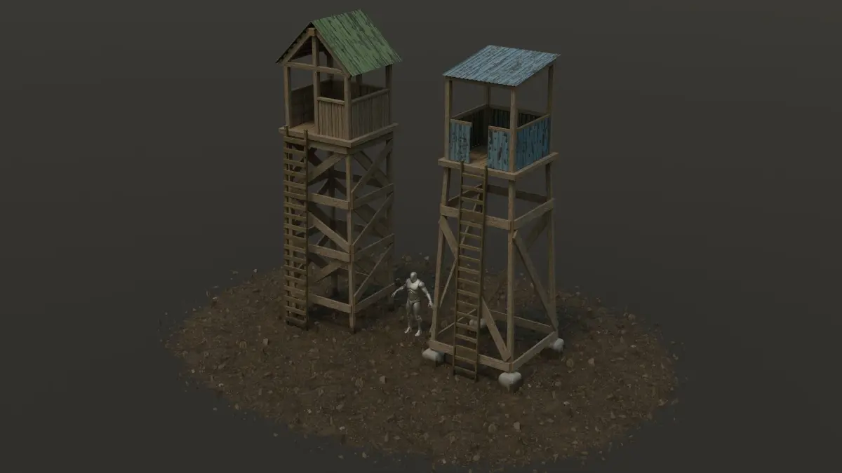 In this pack, you will find five unique outposts that are well optimized and look great up close and afar. Rendered within blender and unity these watchtowers look really nice. The files are optimized well to use a minimum number of draw calls by sharing a single texture sheet and using the power of material instancing with Unity, Unreal Engine, or the game engine of your choice.