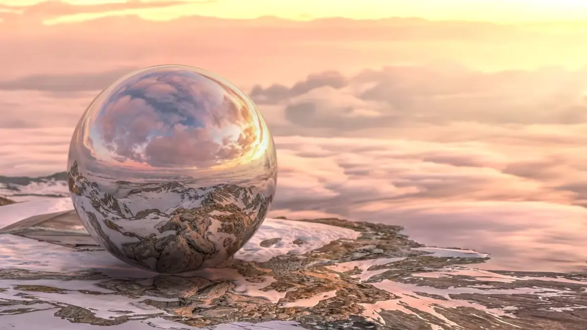 - **Atmosphere: **Soft, volumetric lighting with warm orange/pink hues from the horizon and cool ambient tones from the upper sky.