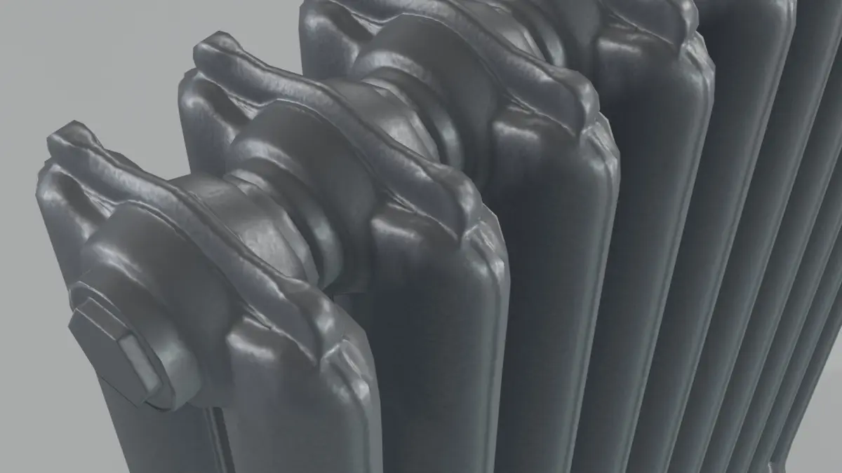This product include an epoca cast iron radiator of two columns and ten elements which include a PBR Material of 2K and render ready, external formats as FBX and OBJ, and a pack of PBR textures of 1K and 2K.
