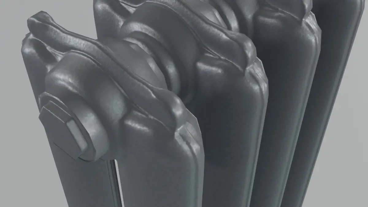 This product include an epoca cast iron radiator of two columns and four elements which include a PBR Material of 2K and render ready, external formats as FBX and OBJ, and a pack of PBR textures of 1K and 2K.