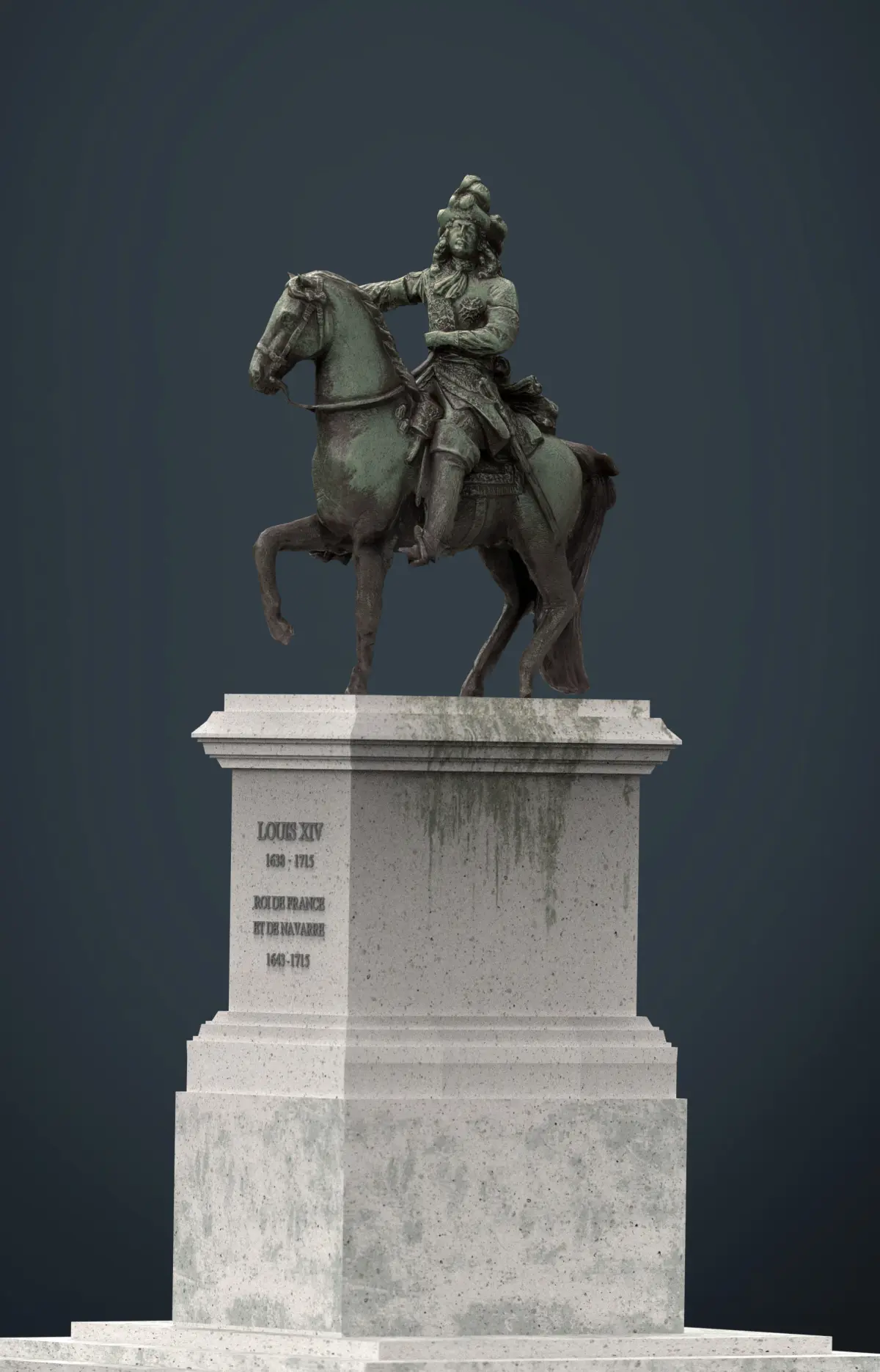 3D HD Model of Equestrian statue of Louis XIV in front of the Château de Versailles