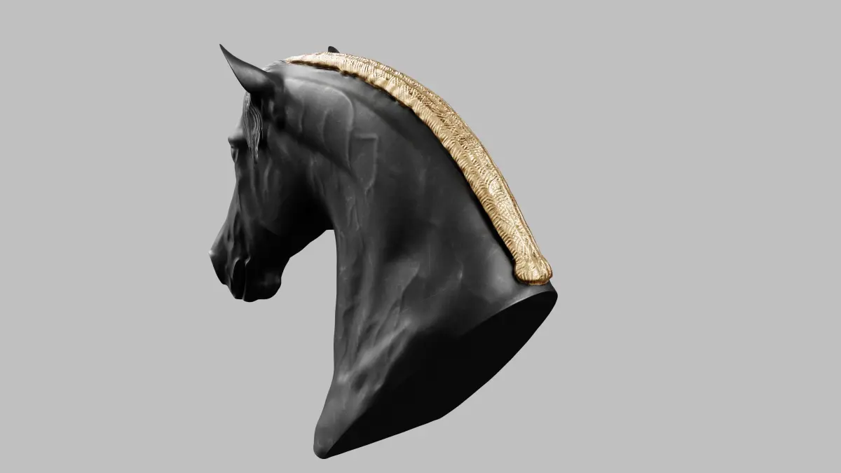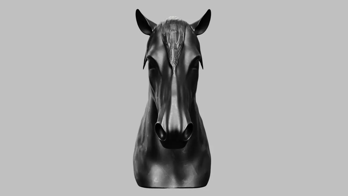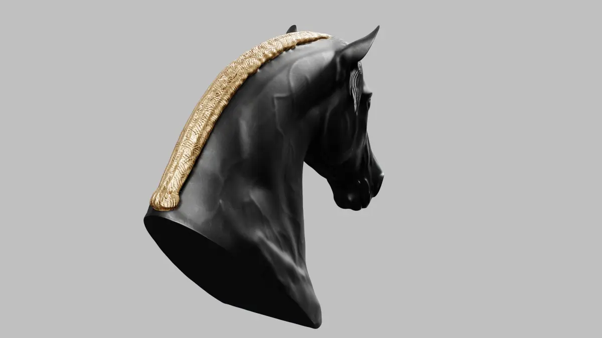 This is a 3D model of an Equinus horse head sculpture, reminiscent of Lladró's porcelain figurines. The model features clean quad topology and is fully UVW mapped. 8K texture maps are included. The model is suitable for interior visualization and decorative purposes. Multiple file formats are provided: .max, .obj, .fbx, .abc, and more.