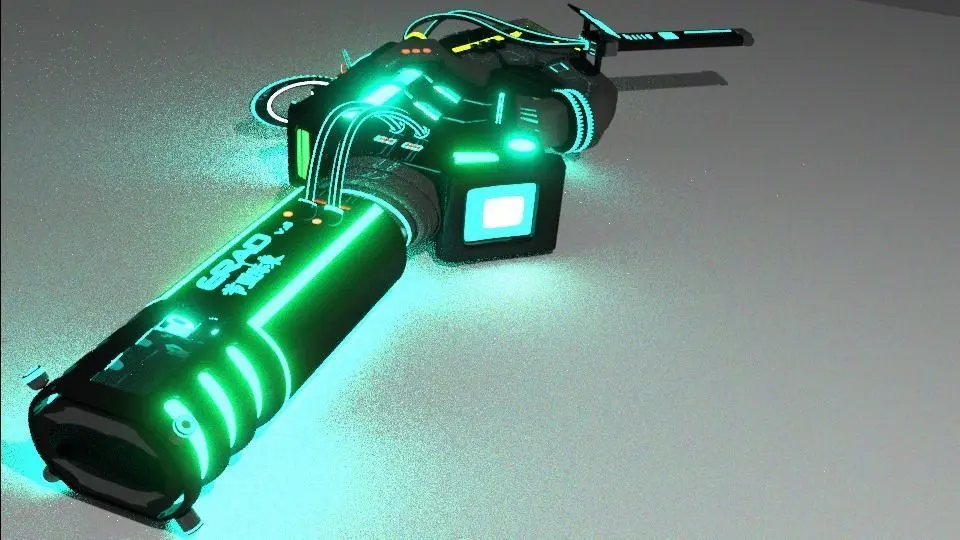 This gun is created in Blender and has no textures but has shaders.