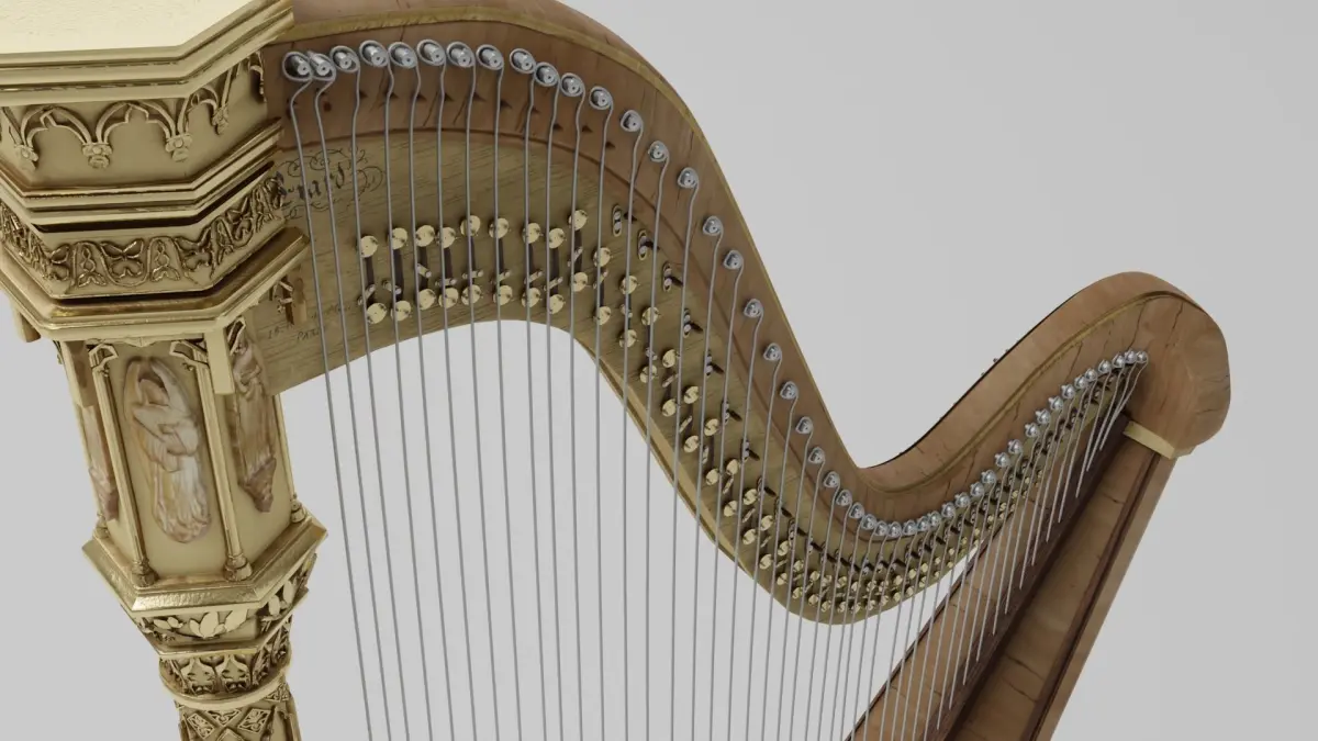 The Harp is made up of 64 Objects. 47 of these are the Harp strings to allow the user to manipulate and bend the strings to their desire. 15 of these are the pedals to allow for rigging capabilities if desired. [There is also a SINGLE Object OBJ file if these manipulations are not required or wanted]. Also includes the raw Blender file used for rendering previews. You can use this model in whatever way you desire, whether for creating animations or used as a background asset for your projects.