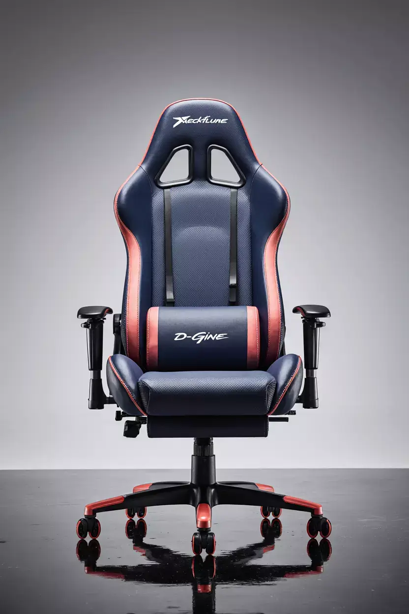 This professional-grade gaming chair is engineered for peak performance and long-term user comfort. It features an ergonomic high-back design with integrated adjustable lumbar and head pillows to provide optimal support and promote proper spinal alignment during extended use. The chair is upholstered in a durable, easy-to-clean material with a striking black and red color palette that exudes a modern, dynamic aesthetic. Key features include multi-directional adjustable armrests, a robust five-star base with smooth-rolling casters for effortless mobility, and a tilt and height-adjustment mechanism to customize the seating position. This chair is an ideal solution for a professional gaming environment, a high-performance home office, or any workspace requiring superior ergonomic support and a contemporary design.