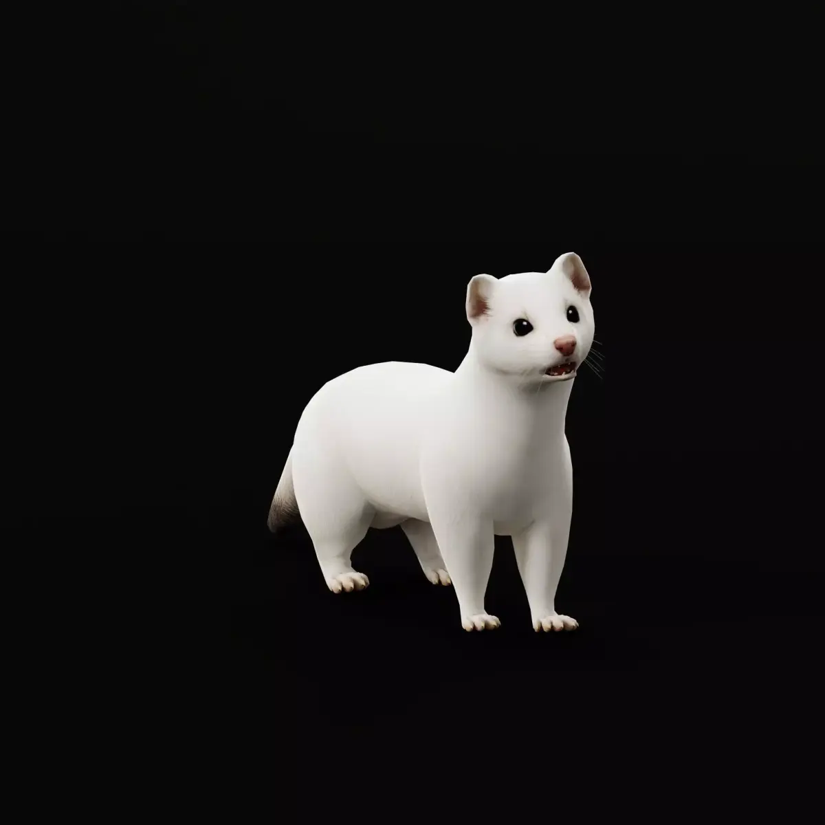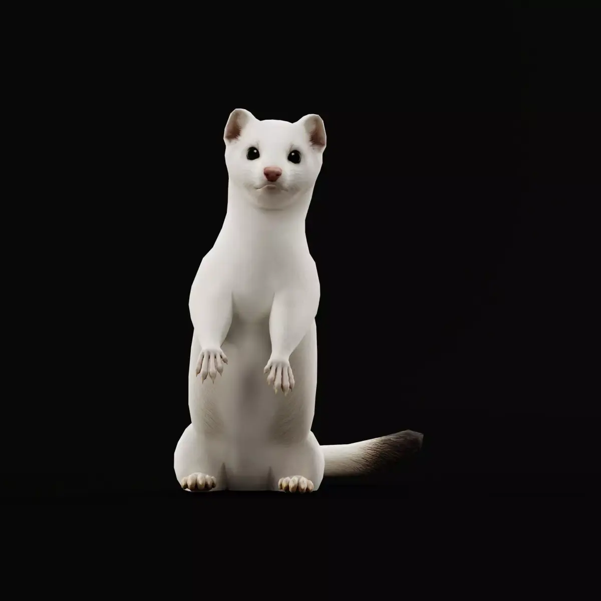 An ermine is simply a stoat (Mustela erminea) in its pure white winter coat, a seasonal transformation for camouflage in snow, keeping only its distinctive black tail tip; this snowy disguise helps the fierce, fast predator ambush prey like rodents and rabbits, making it nearly invisible despite its small size, but in milder climates or when snow is absent, it retains its brown summer fur with a white belly. .3D Ermine Stoat Weasel Animal Model By Nyilonelycompany (nyc).