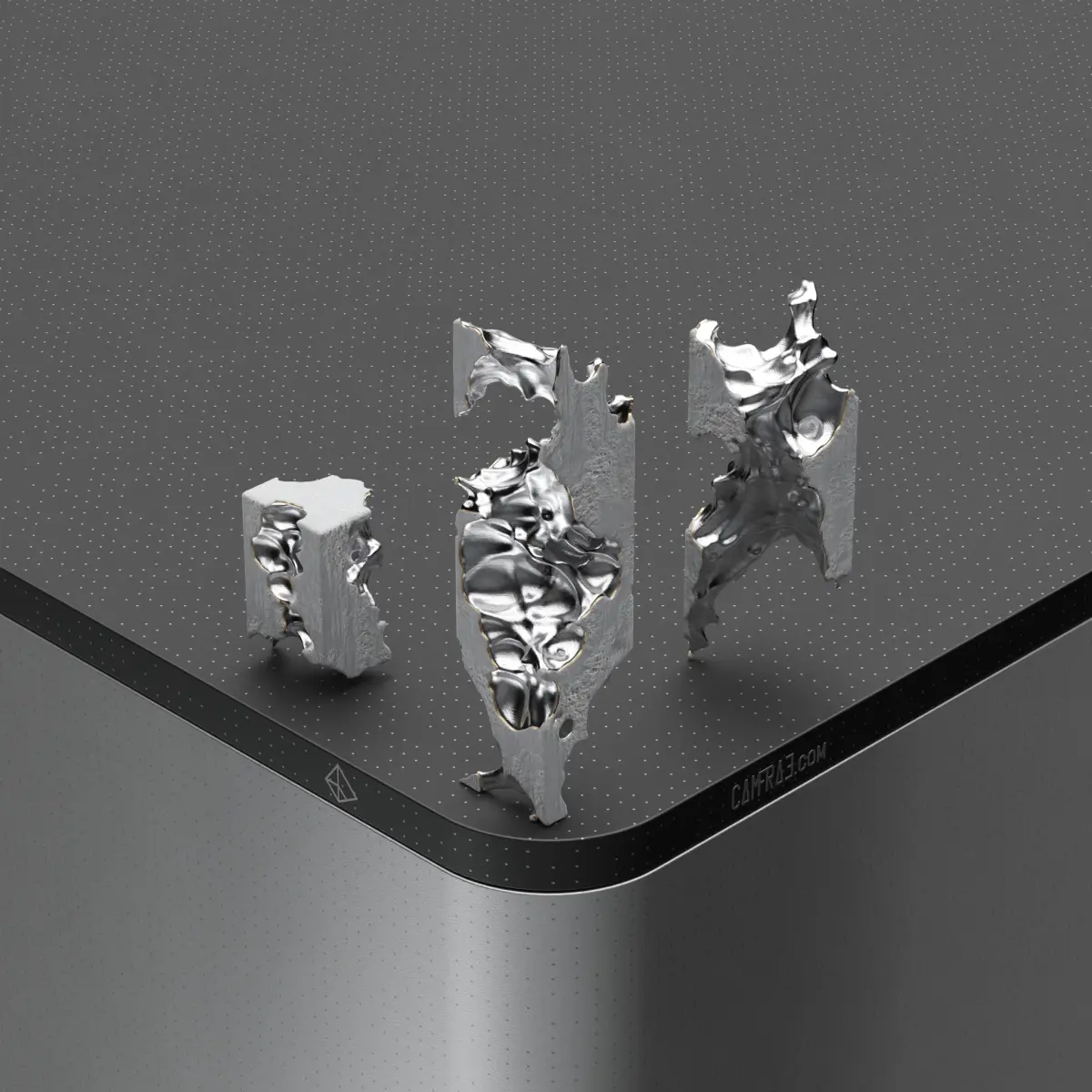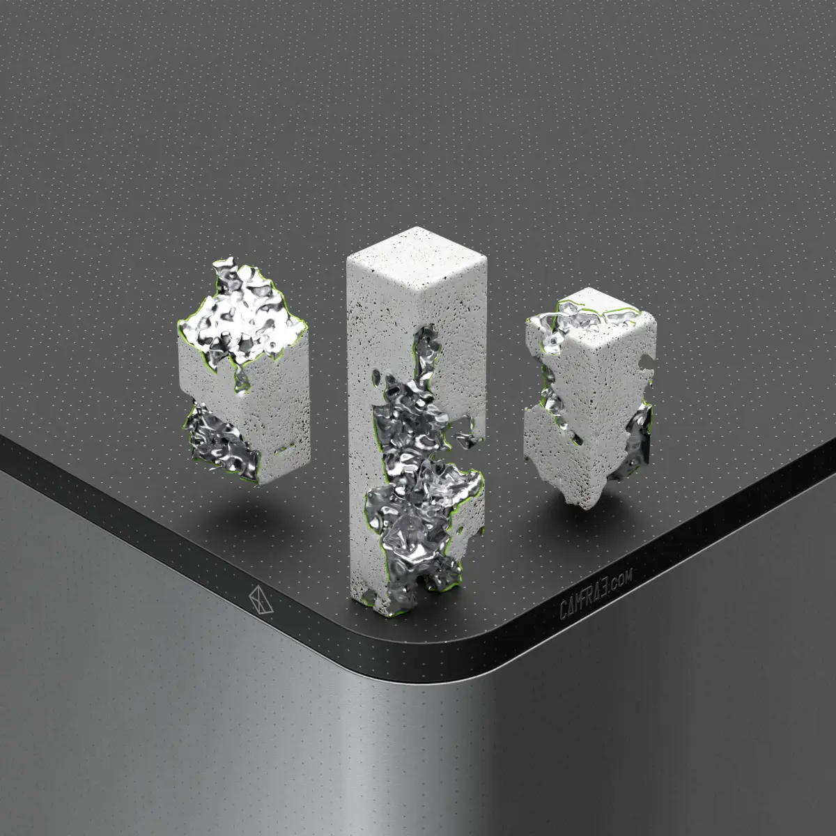 Each stone is crafted with a unique erosion pattern generated through volumetric noise, combining raw concrete-like textures with smooth, liquid-inspired cavities. The result is a striking contrast between brutalist geometry and organic flow — ideal for cinematic visuals, motion design, and product renders.
