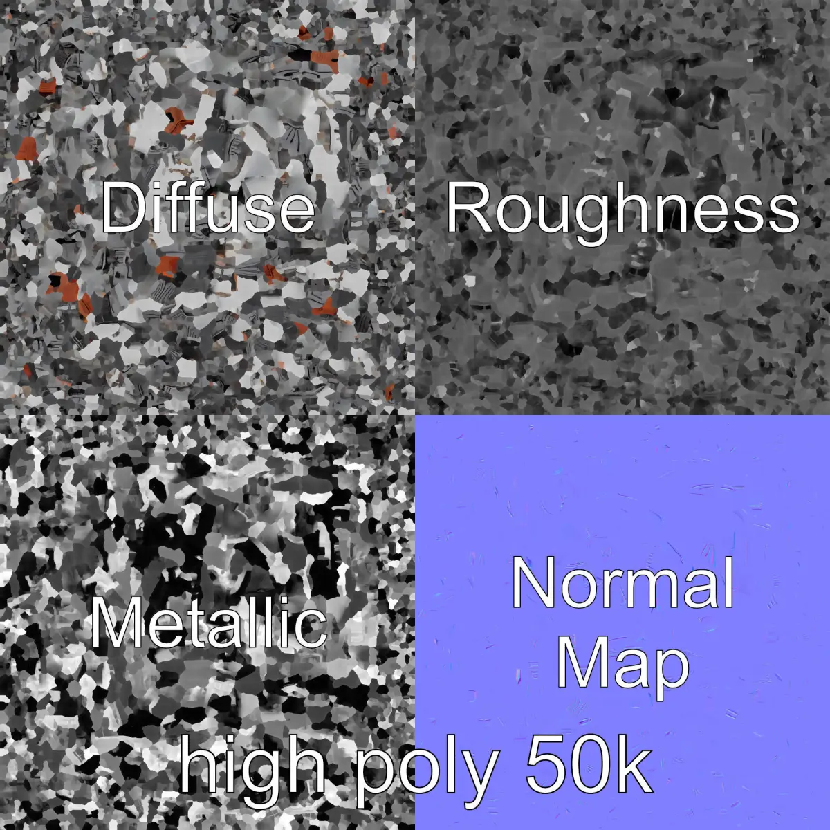 The model's textures are PBR, Diffuse, NormalMap, and reflection/roughness/metallic, which are suitable for any modern rendering engine. All textures are 4096*4096 in size. All models are accurately unwrapped and have no overlapping UV.