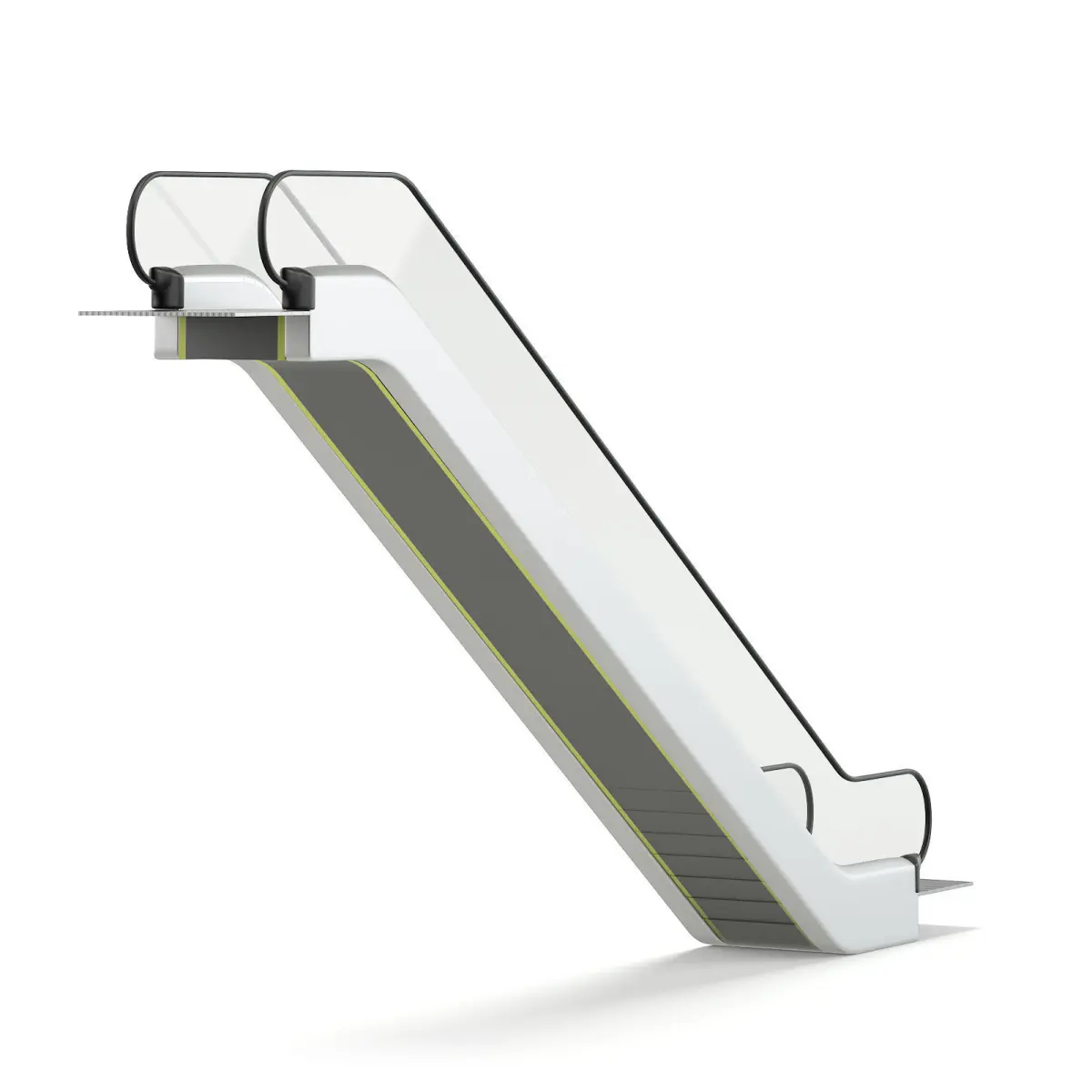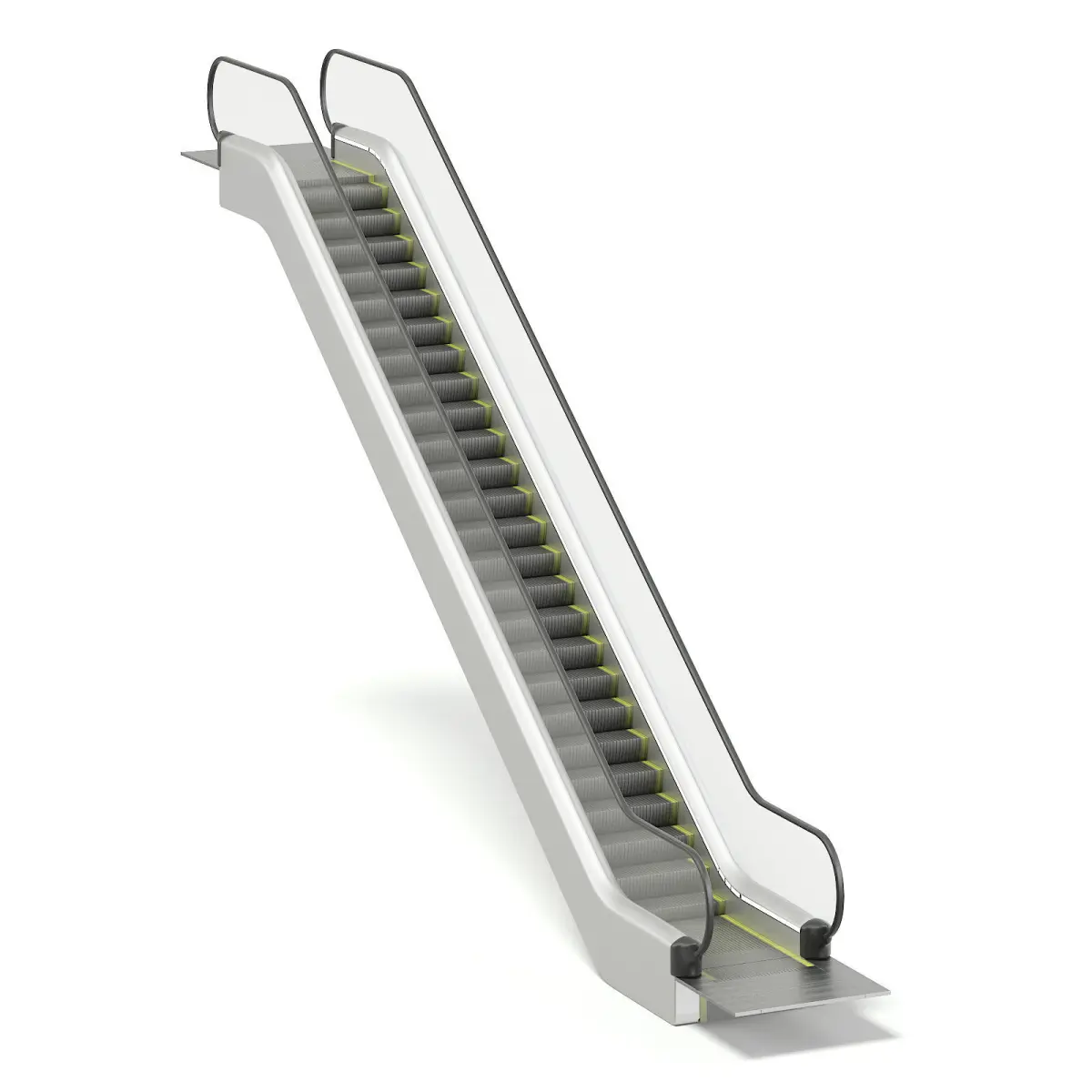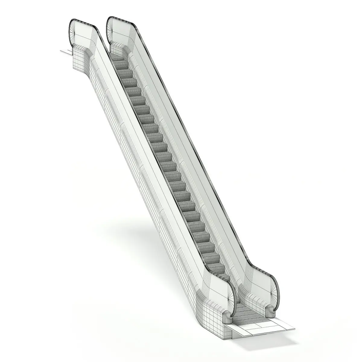 Escalator 3D model with silver sides and glass railings. This model is perfect if you are creating a large public scene, like a mall or a subway station. Compatible with 3ds max 2010 (V-Ray, Mental Ray, Corona) or higher, Cinema 4D R15 (V-Ray, Advanced Renderer), FBX, OBJ and Unreal Engine.
