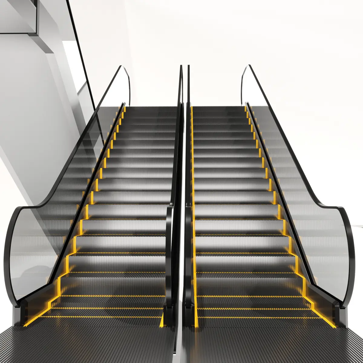 High-quality 3D model of a modern escalator system, designed for use in shopping malls, airports, metro stations, and commercial buildings.This detailed model includes ascending and descending escalators with illuminated yellow safety edges, realistic treads, glass balustrades, and metal finishes.Perfect for architectural visualization, interior scenes, or real-time applications. The geometry is clean and optimized for fast rendering while preservinga high level of realism.
