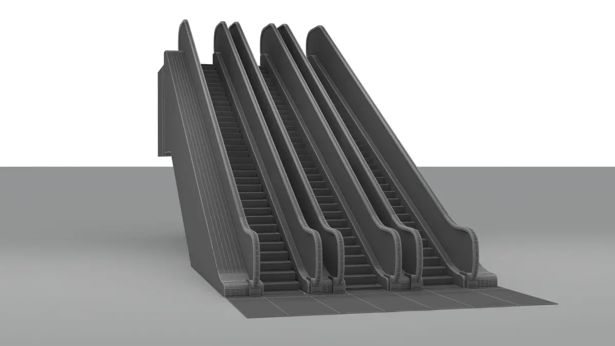 3d scene has: triple escalator with up and down swapped streaming. Animation has 450 frames consistent stair movement. HDRI and lighting included in scene.OBJ and FBX formats available. FBX animation is baked. So importing to other 3D packages will work just fine!