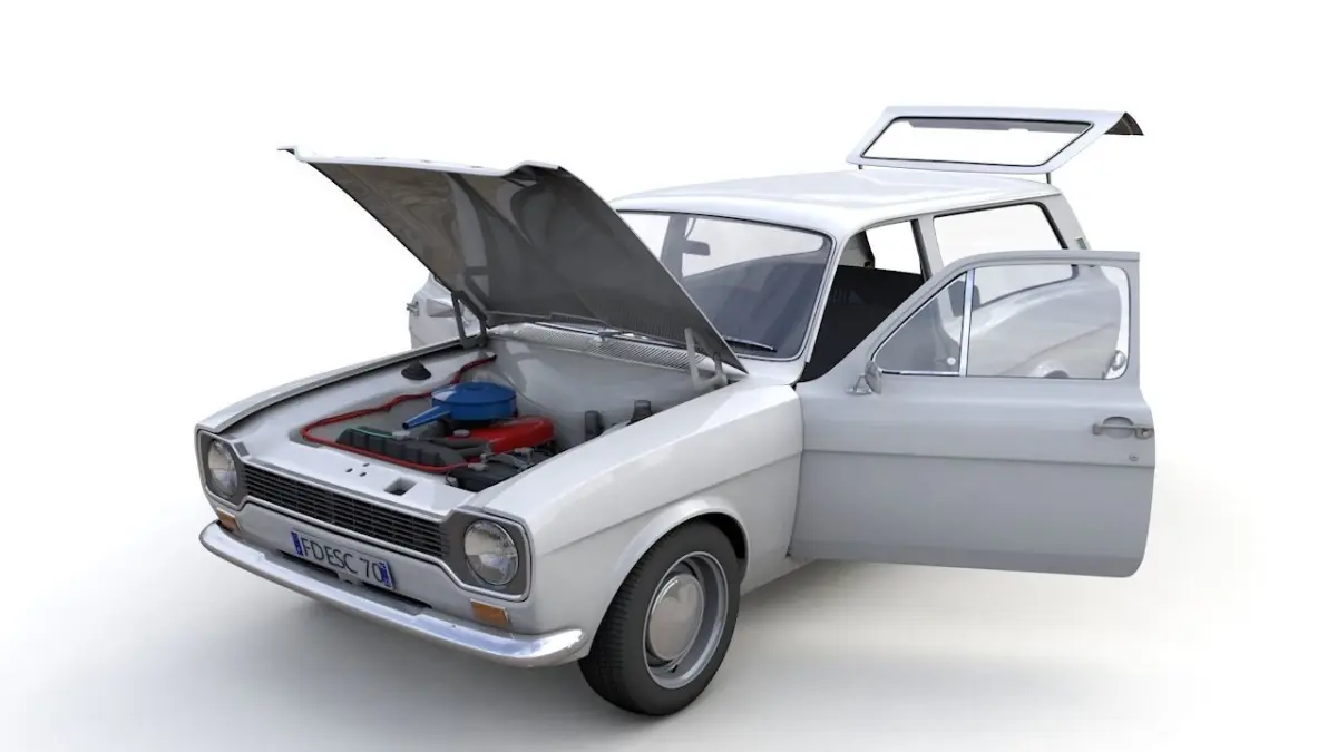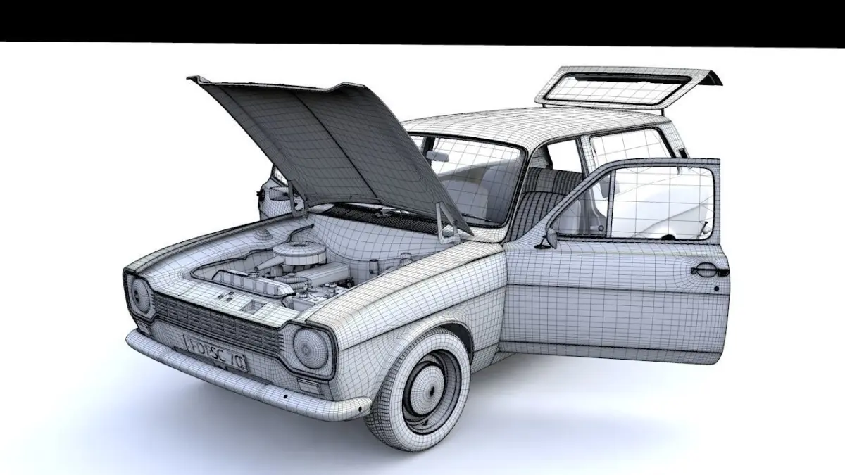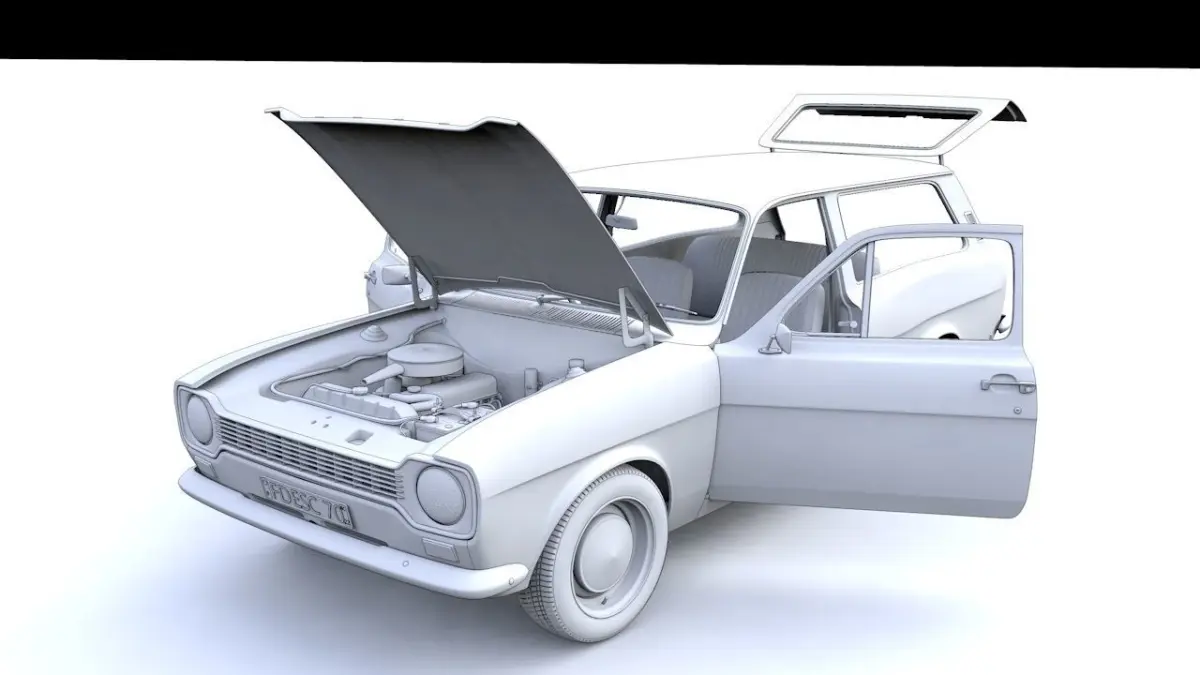 High detailed 3D model Escort Mk1 Estate 1971, from inside and outside.
