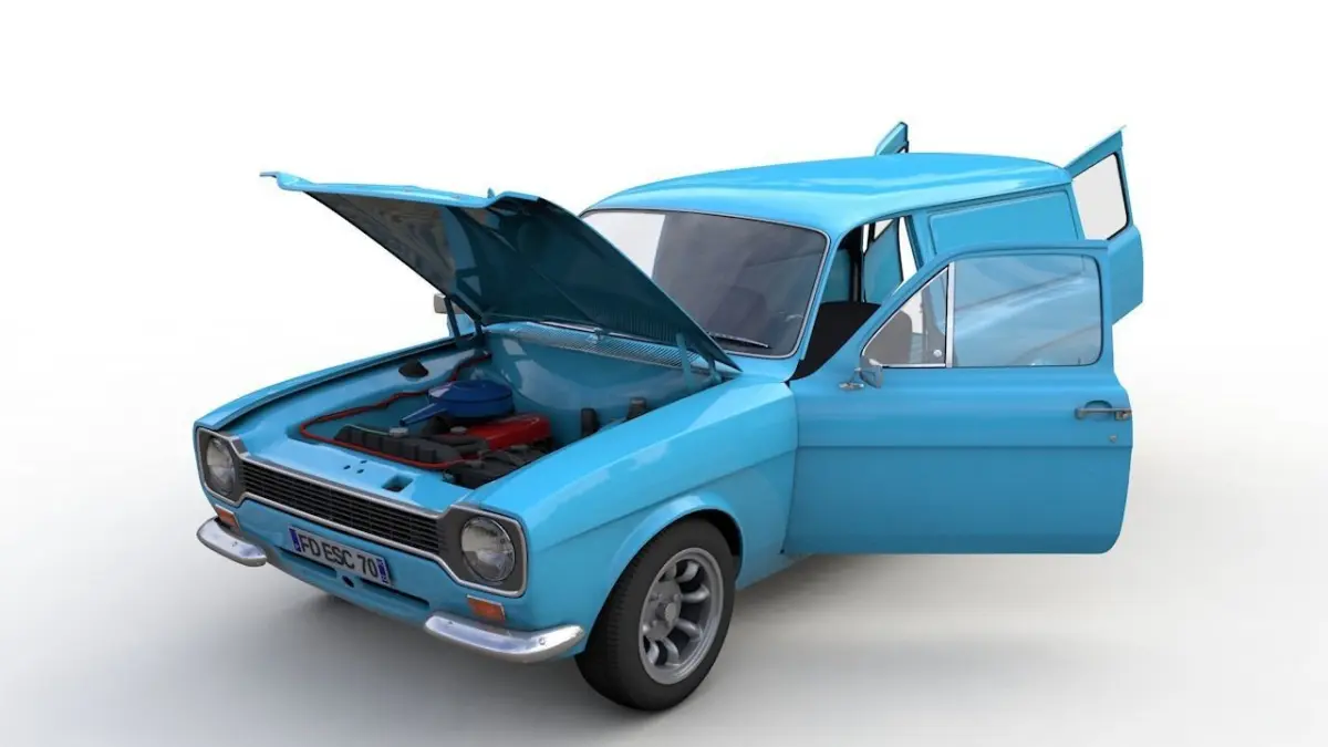 High detailed 3D model Escort Mk1 Panel Van 1970, from inside and outside.