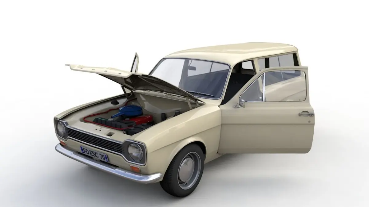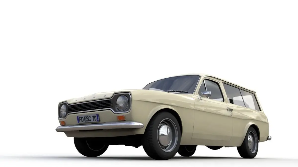 High detailed 3D model Escort Mk1 Station Wagon 1970, from inside and outside.