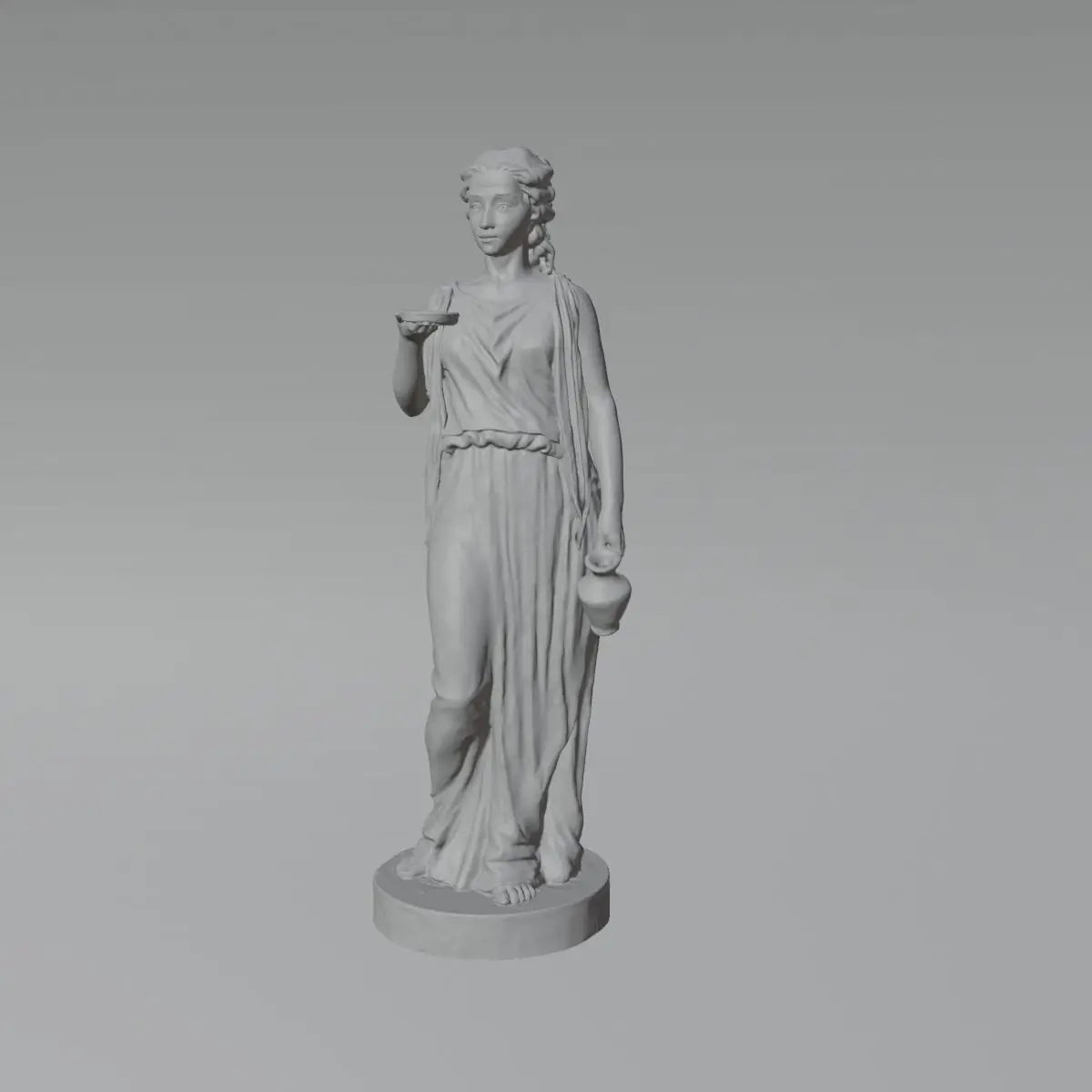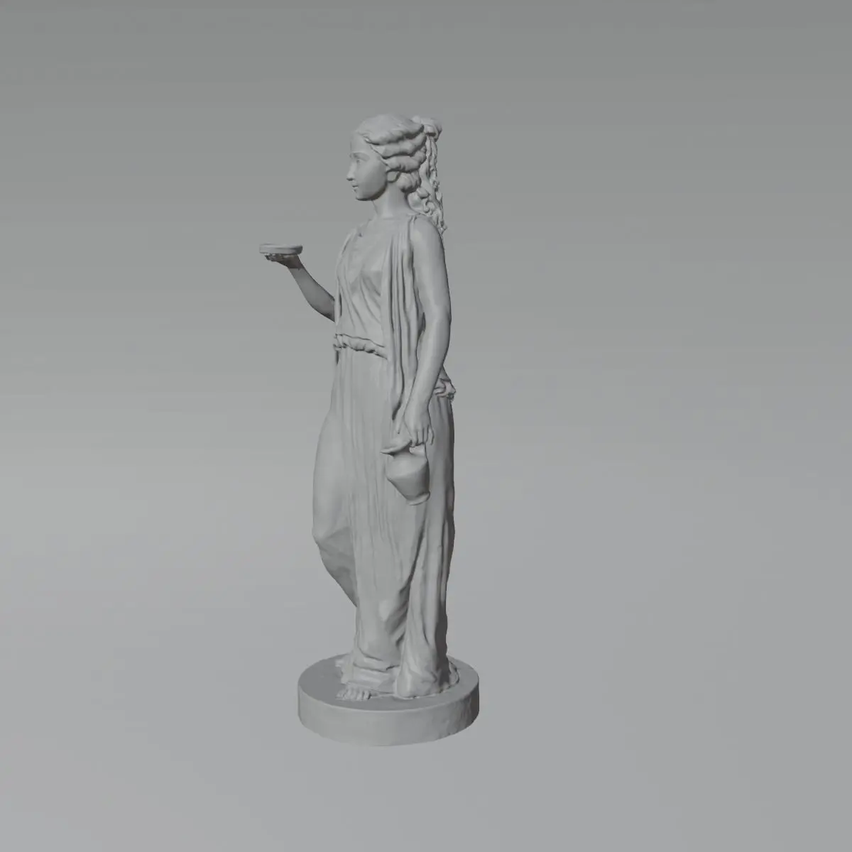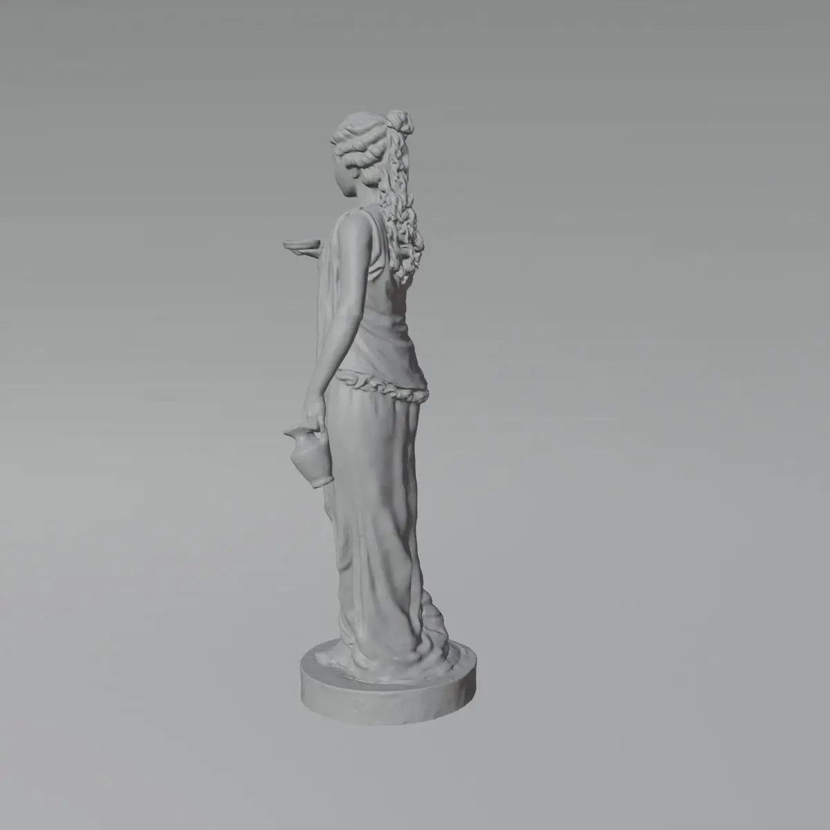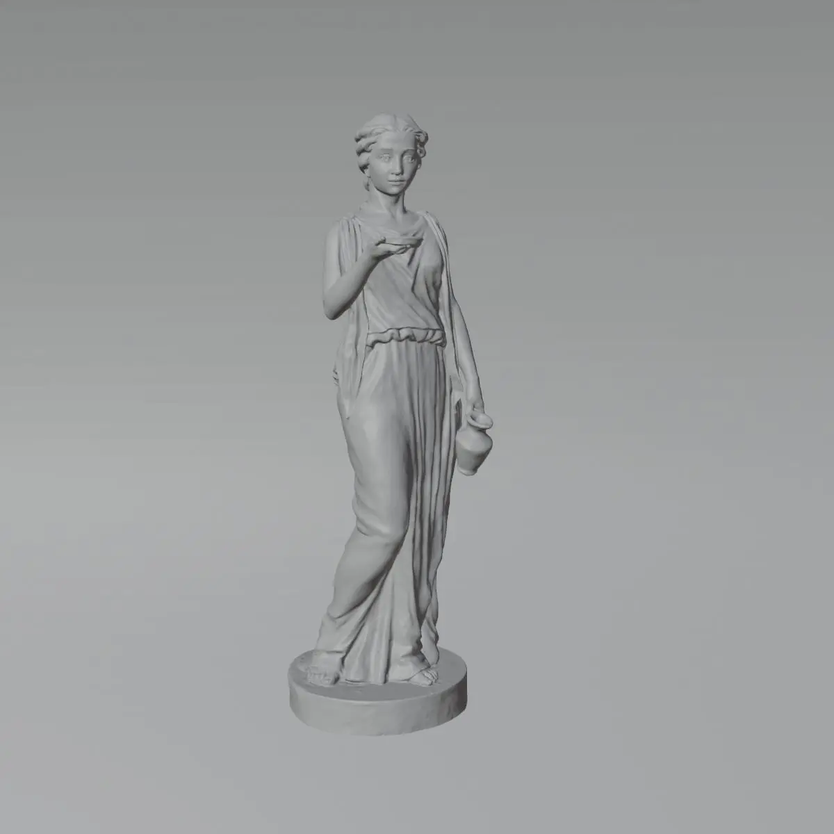 Escultura femenina clasica de un alto de 1,40 mts. aproximadamente, una malla de 6 millones de poligonos para un excelente resultado de impresion. escaneo de escultura, posterior retoque en Blender.