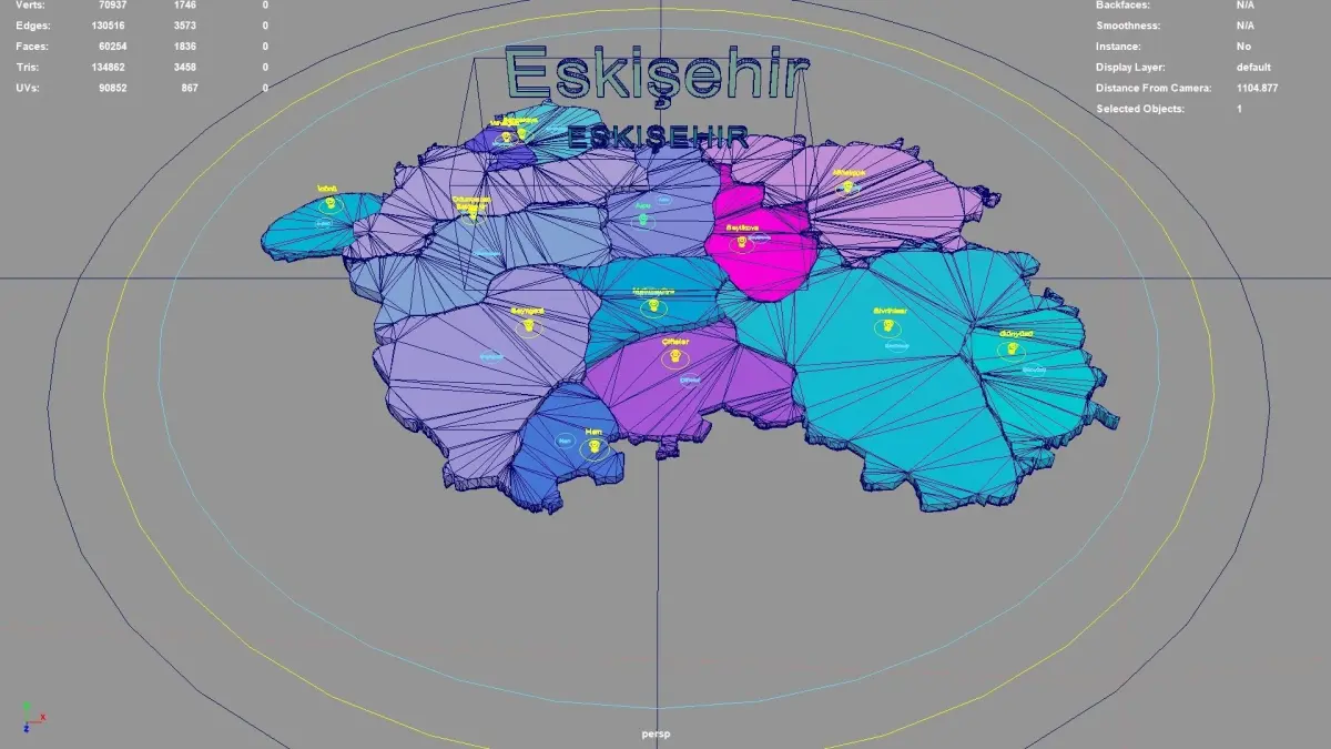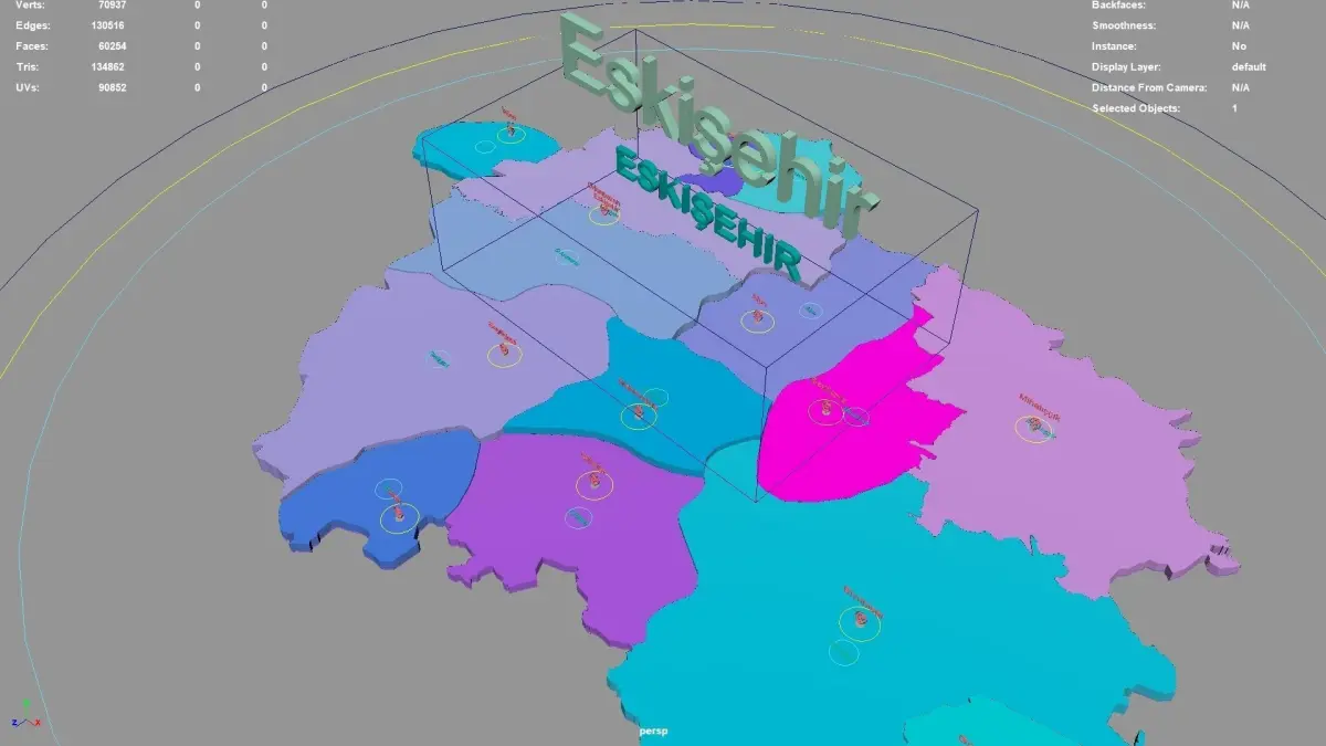 Eskişehir regions : The model is divided according to the administrative region of Eskişehir. Each region is clearly separated so you can easily isolate it or change the colors. Names are also editable and separate.
