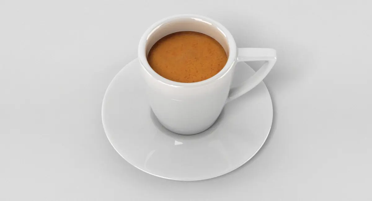 A DETAILED 3D MODEL OF A CUP OF ESPRESSO;