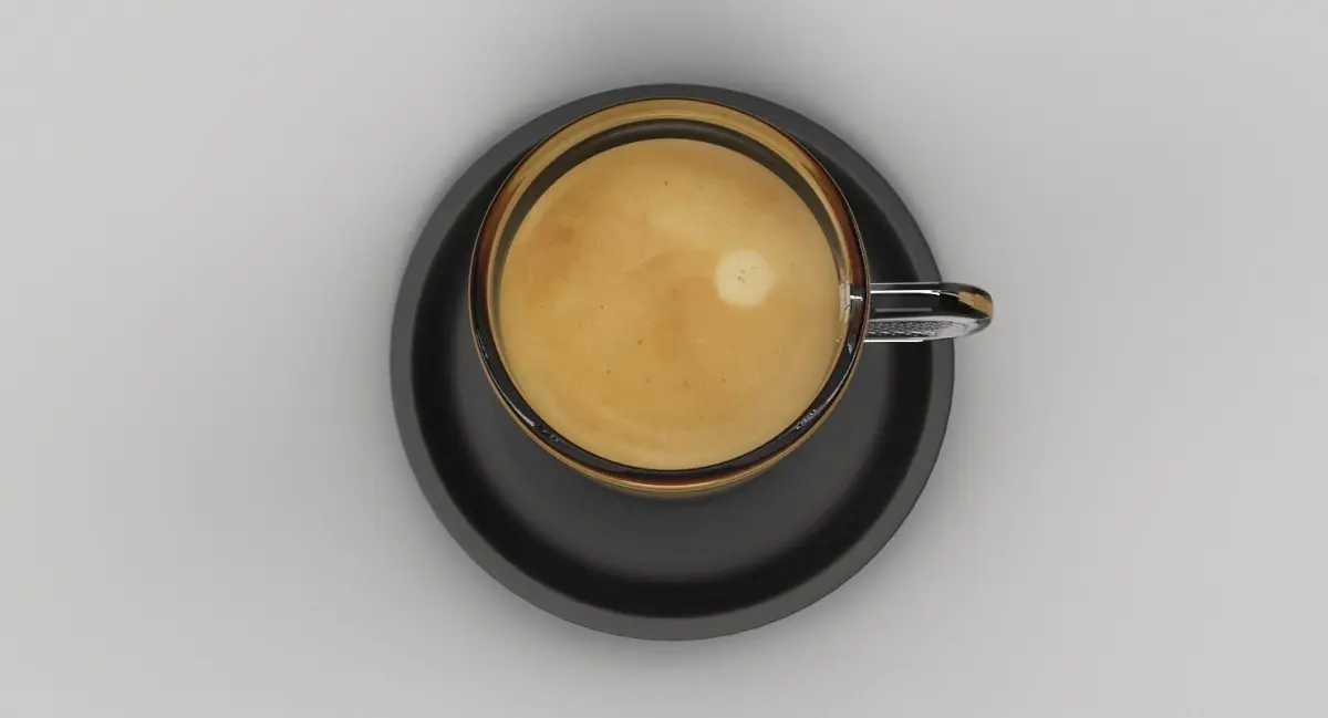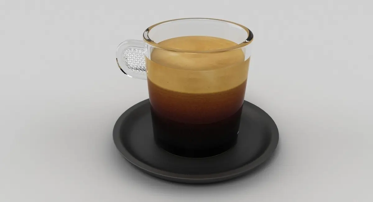 A DETAILED 3D MODEL OF A GLASS OF ESPRESSO COFFEE;