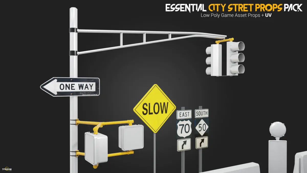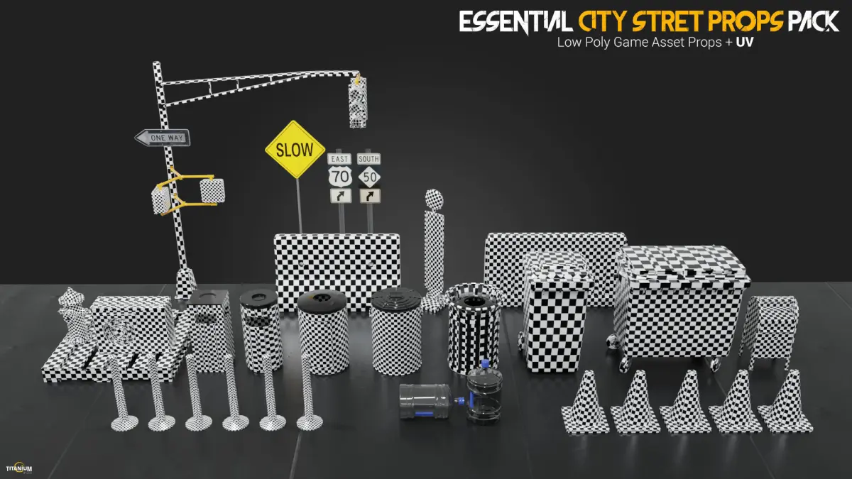 High quality Packed with high quality clean UVs ( UV unwrapped) Contain all essential city street models Realistic Ready to use in any 3d software Various Bin models from big to small wood bin in the parks Various concrete barriers Air cooler Fire hydrant Mail box and water dispenser bottle Traffic lights and signs