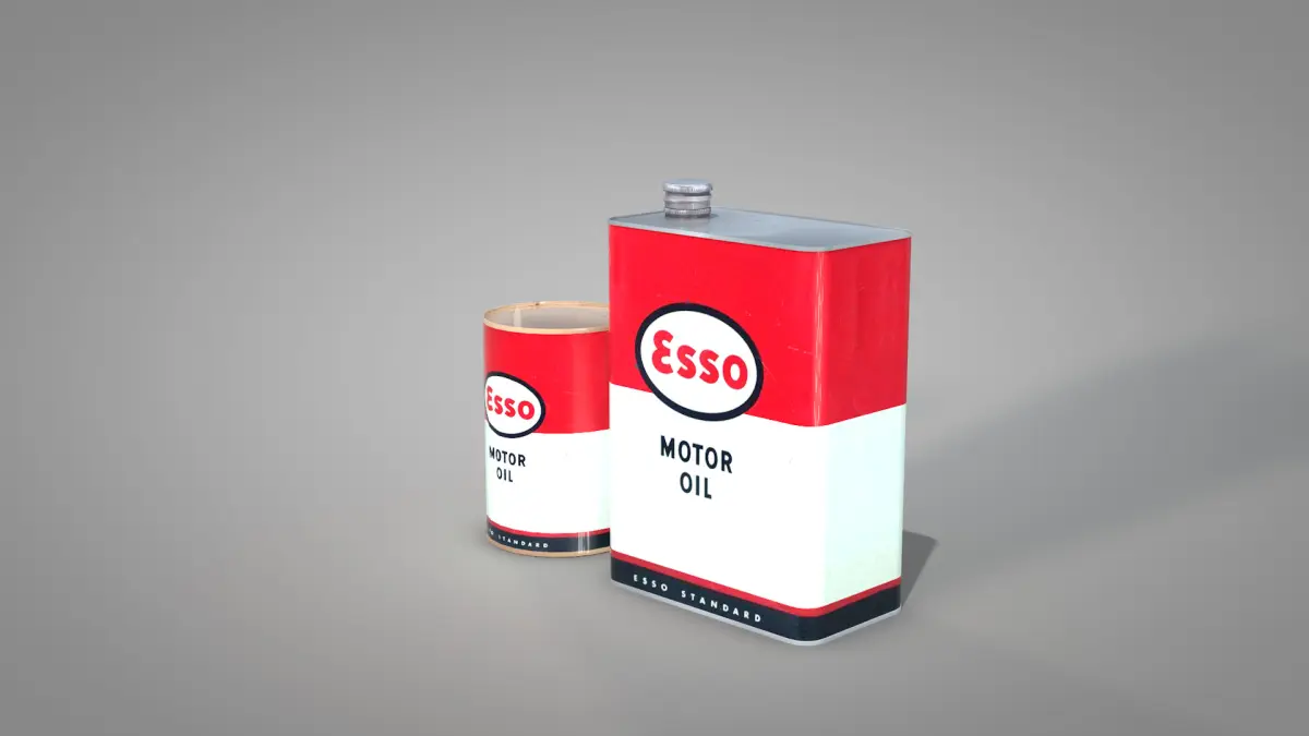 Esso Oil can made in Cinema 4D R19 and exported to files, 3ds, dae, fbx, obj and blender.The material was developed in polygonal mesh with textures in** 4K UV map.**There are two cans, a 1 liter cylindrical and a 2 liter rectangular, very old, which can be found in online auctions. I made them with the smallest details for the 50s collection, where I already have several objects for sale here on my page.I hope you like it and that it is useful for your work.Thanks for visiting, renatodalle.