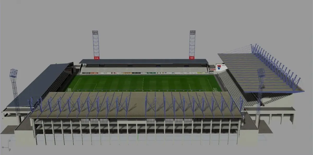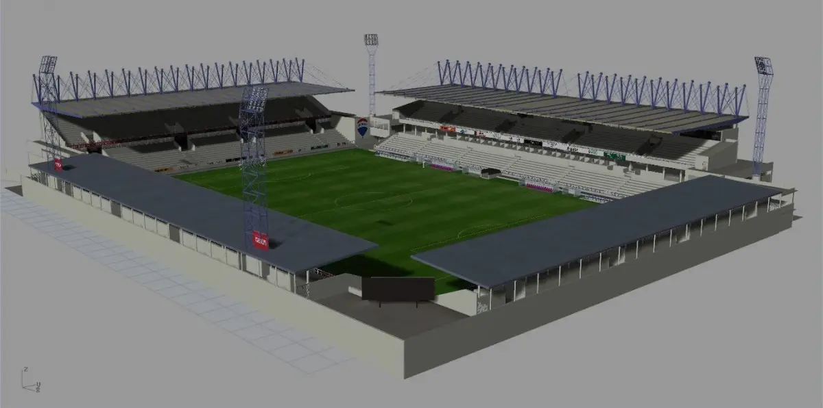 Hi, guys! Here is Cidade de Barcelos Stadium, Home ground of Gil Vicente from Portugal. The stadium is created for a PC/video game. The model is created in Rhinoceros 3D v5.0, but it's compatible with v4.0 as well. All railings and fencing are 2D images with transparency set. The model is optimized for any kind of computer and video games. I can create the seats for potential buyers as well if needed. Light structure and high quality of detailization. The following formats are exported: