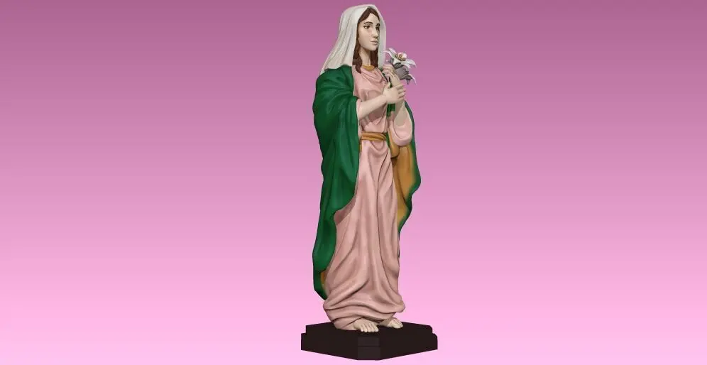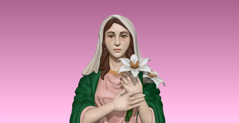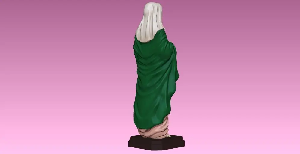 Design ConceptThe statue captures the serenity and grace of the Virgin Mary holding delicate flowers, signifying purity and peace. It showcases intricate detailing inspired by classical religious artwork, suitable for placement in decorative settings or for religious observance.UsageIdeal for indoor decoration in religious spaces, personal meditation rooms, or spiritual events. It serves as a symbol of comfort and a centerpiece for spiritual gatherings.Printing SuggestionsIt is recommended to use a fine nozzle to capture the intricate details. Print with a slow speed and adequate support to ensure the small features of the flowers are preserved. Consider using a high-quality resin material to enhance the statue's delicate details and ensure a smooth finish.Assembly InstructionsThe statue is a single-piece model which requires no assembly post-printing. Carefully remove any supports and finish with a gentle sanding for an optimal appearance.