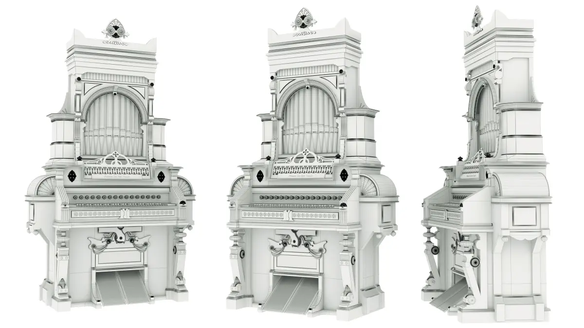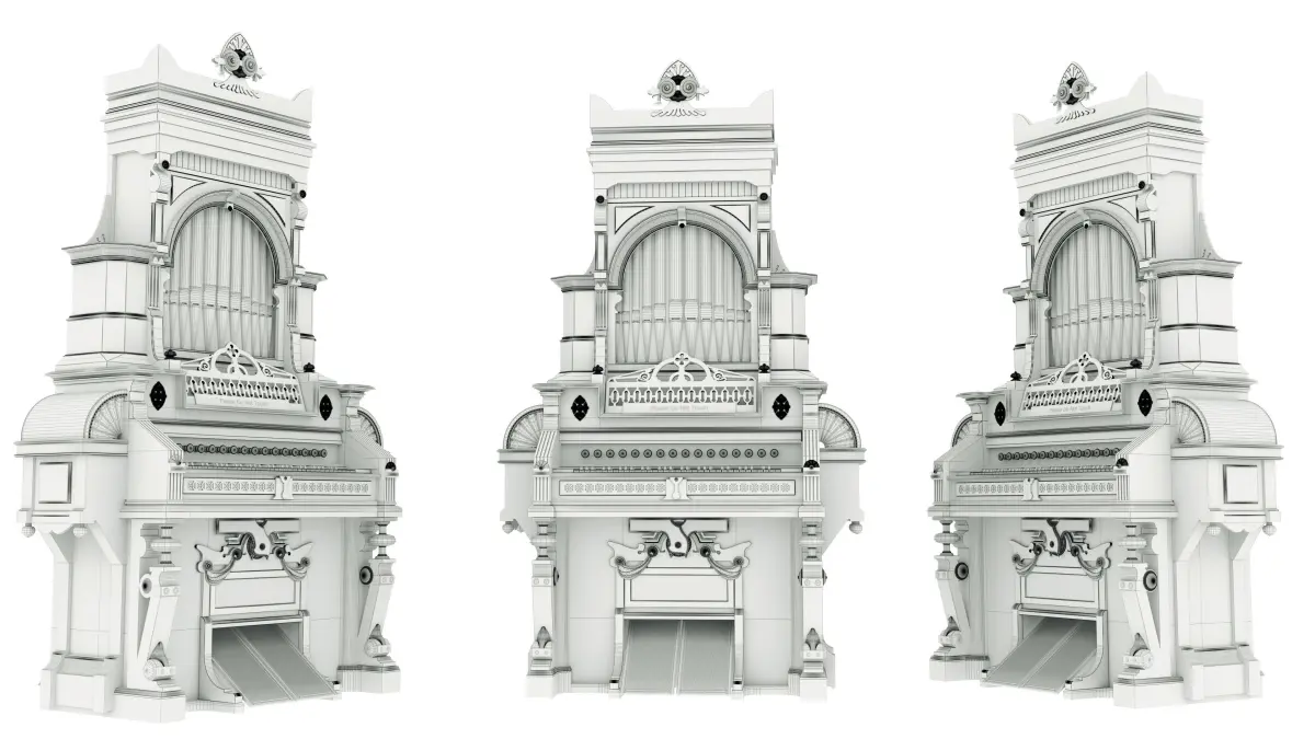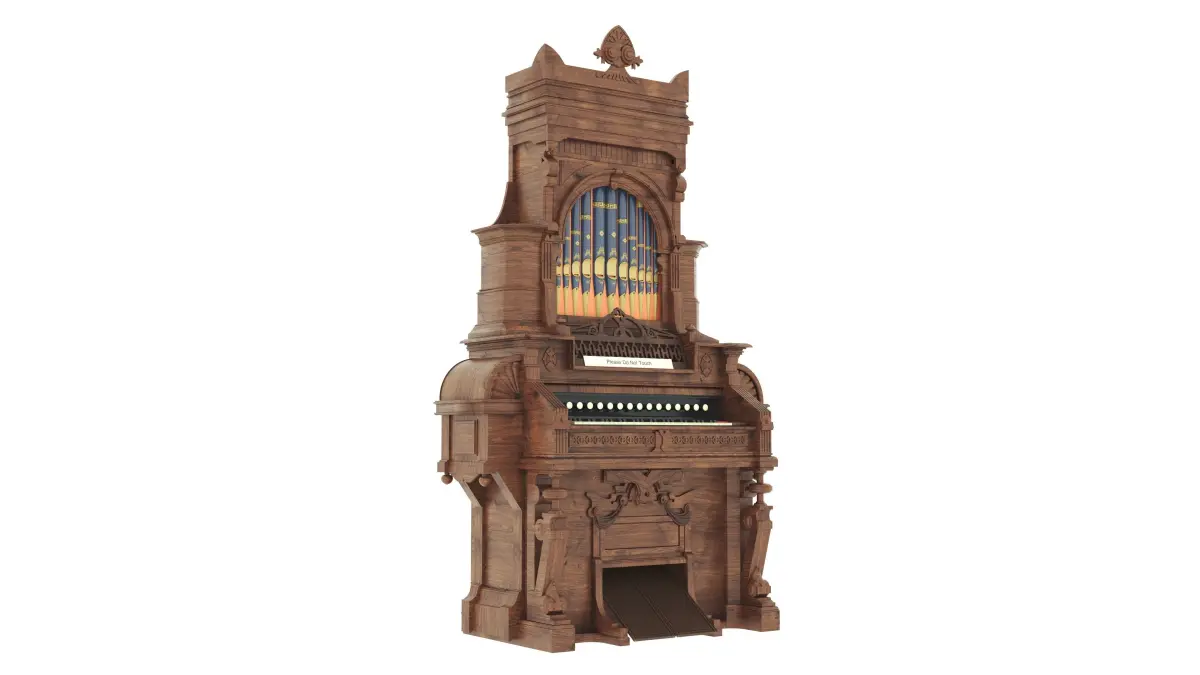 Modeling: 3ds Max 2020 Format: FBX, OBJ, STL, 3Ds Estey Boudoir Organ with pipe top - 1890 Estey catalogueParlor organ, Estey Organ Company, Brattleboro VT, c. 1882, walnut, pine, steel, painted and gilt with ivory and ebony keys - Bennington Museum - Bennington,