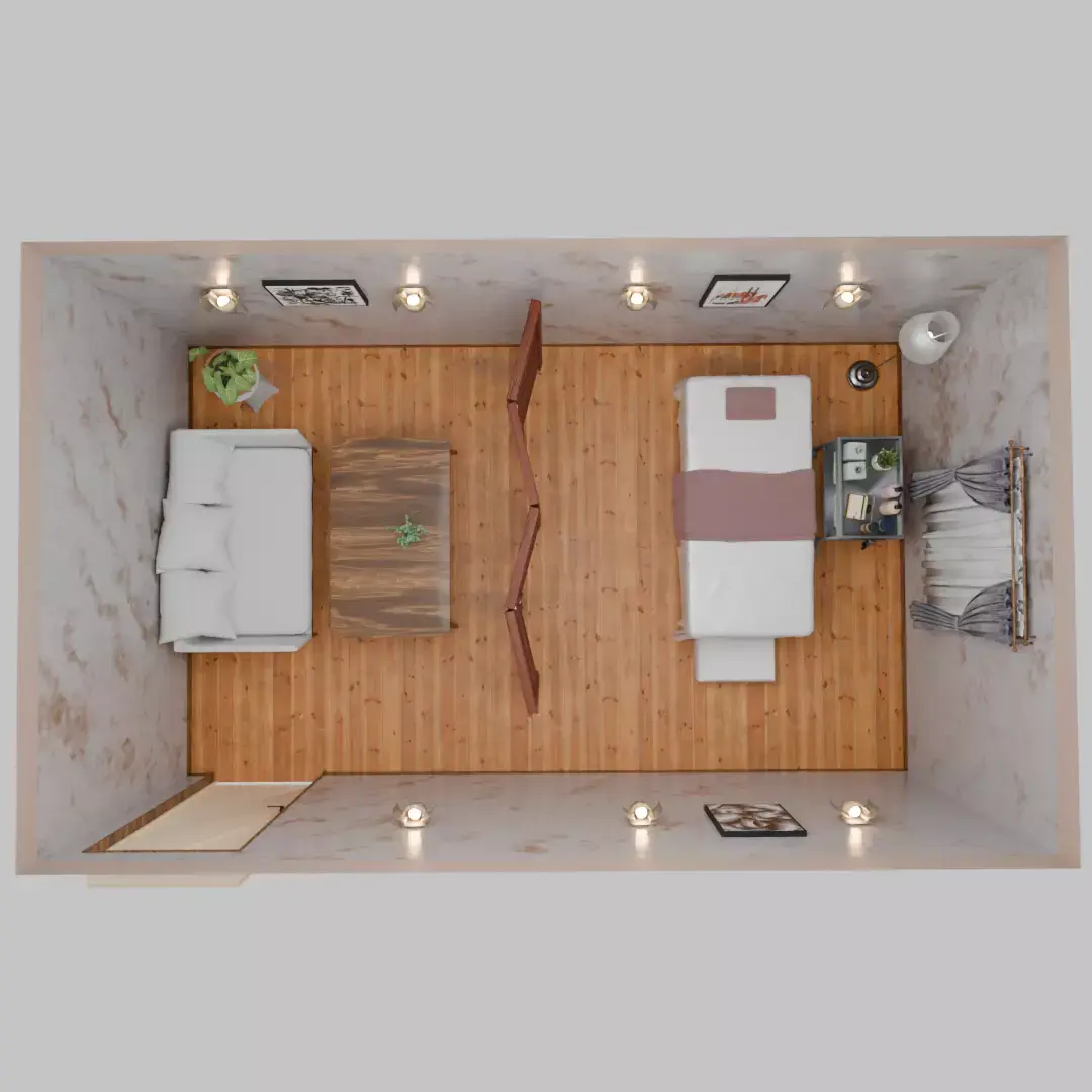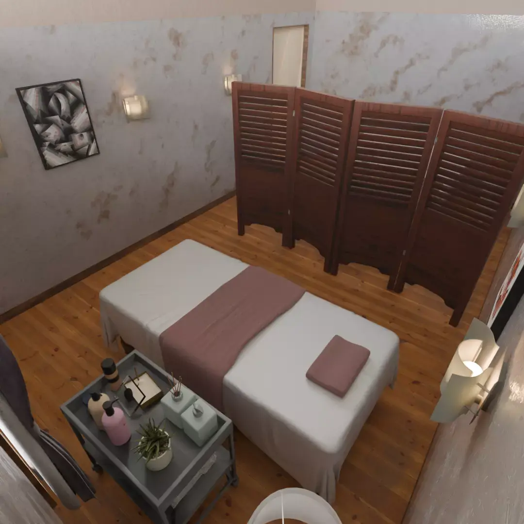 Create the ultimate relaxation experience—This 3D model of an esthetic massage room realistically recreates a soothing and luxurious space.
