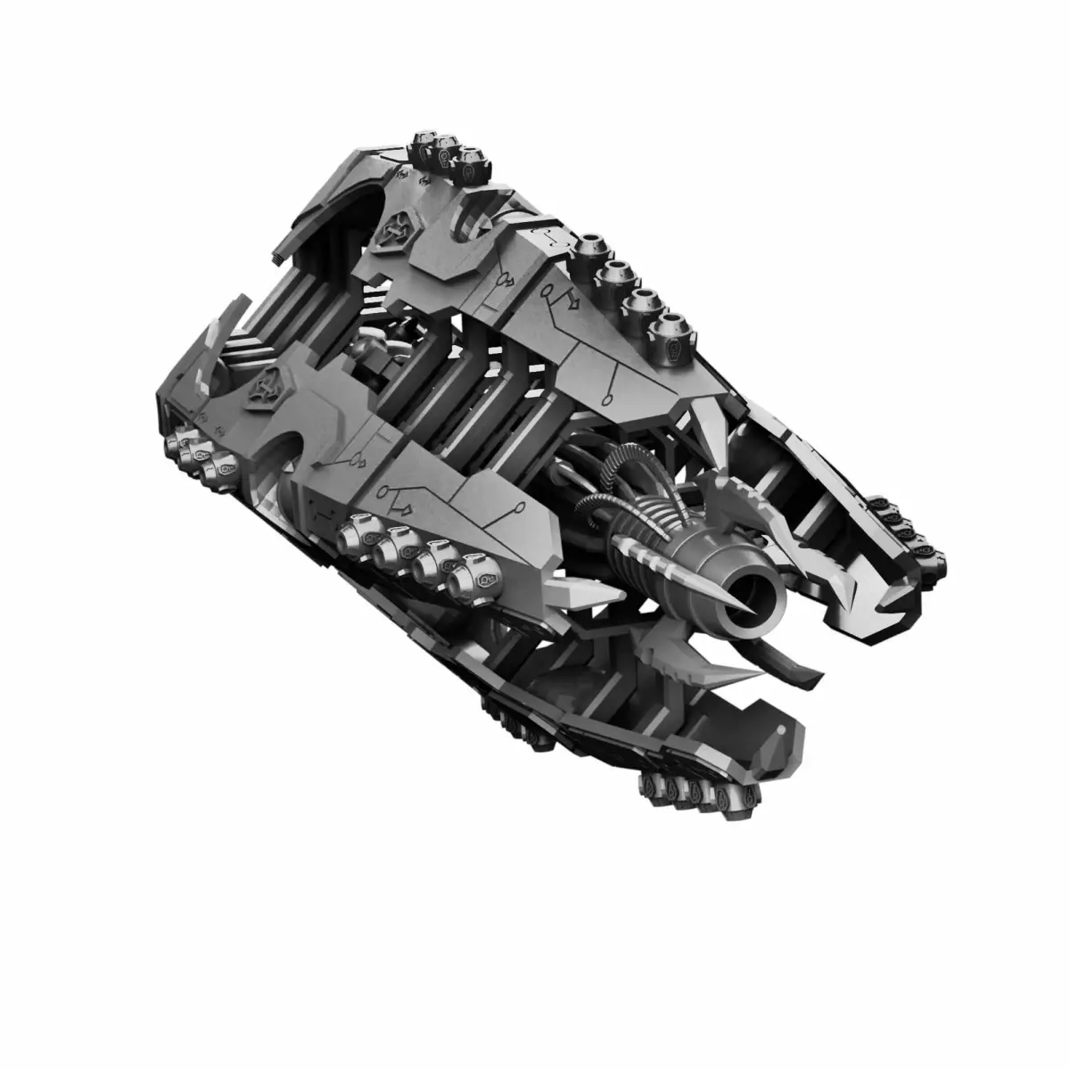 - 17/01/2025: Added a text fire base, optional base plate (with 3mm hole for a flight base), added a redesigned front core which is split into more sections for easy printing. Added a top plate with different drone support, added optional side plates along with two optional side cannons (dual barrel and single barrel options).