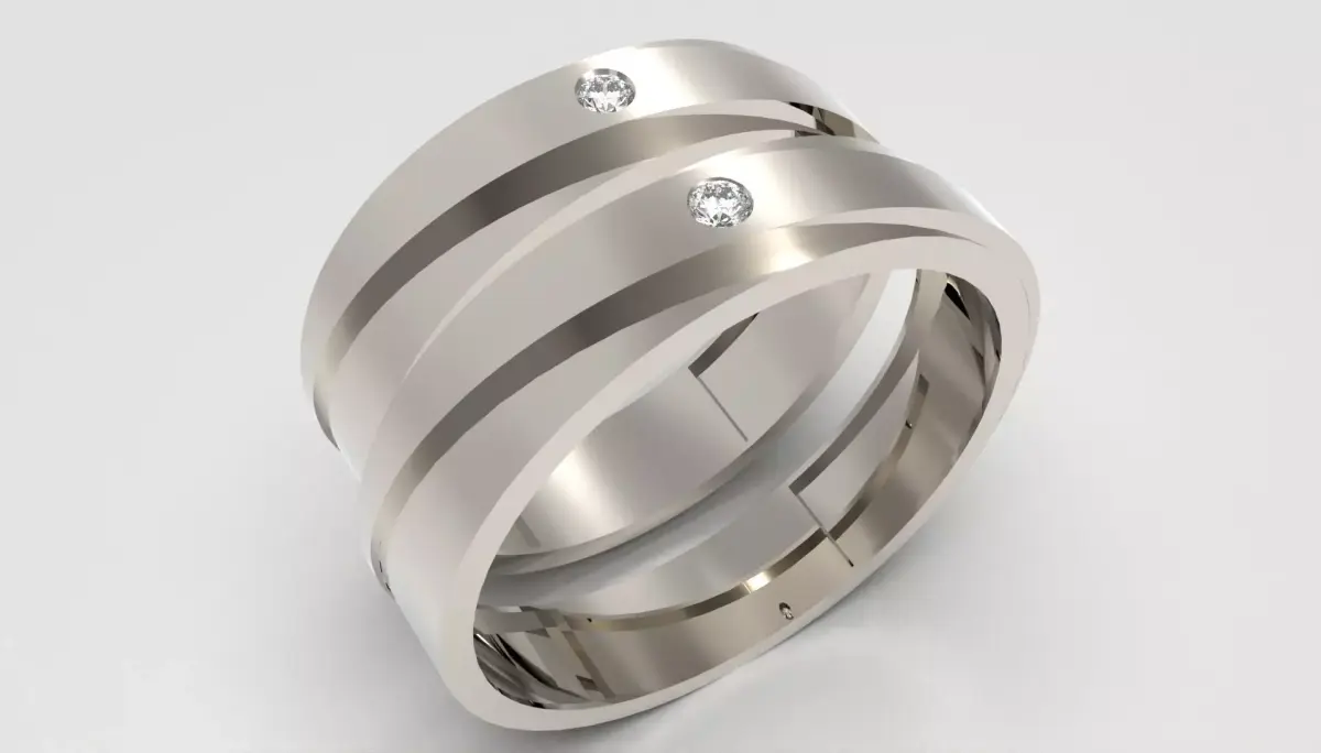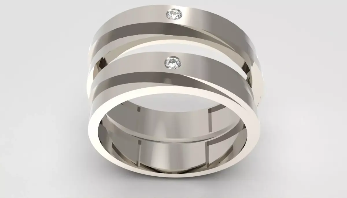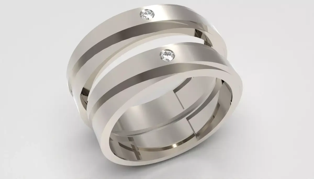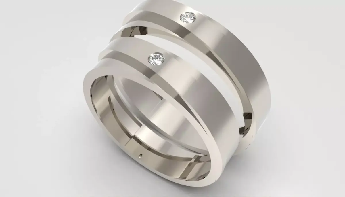 This wedding ring set highlights a refined minimalistic design defined by smooth curvature, clean surfaces, and a continuous split-line motif.Each band features a single precision-cut round diamond, tension-set within the metal to emphasize purity, symmetry, and modern elegance.The reflective metal shader, controlled specular highlights, and physically accurate light behavior showcase exceptional rendering quality.From perfect topology and subtle bevels to photorealistic material mapping, every detail demonstrates the harmony between digital craftsmanship and contemporary jewelry aesthetics—creating a timeless symbol of unity for modern couples.Men's ring size: 62 EuroWomen's ring size: 54 EuroFor any edit or revision: +447301387795 or elpouriapaypal@gmail.com