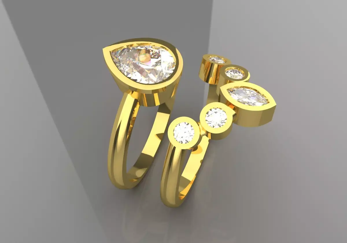 Technical specifications for saleFeatures Technical descriptionProduct type Contoured/Custom Fit Set.Product code WR0016Metal (18K gold in white, yellow or rose gold/platinum).Engagement Ring Solitaire or Halo with a large, prominent center stone.Wedding Band A complementary ring that has a custom curve to fit snugly under or next to the engagement ring.The setting of the ring is usually Pavé or Channel Setting over the entire band.Manufacturing technique Three-dimensional and precise construction to ensure that the two rings fit together without gaps.
